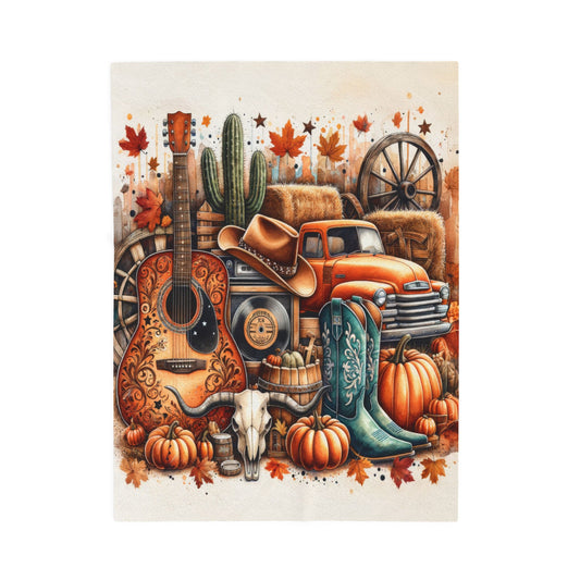 Western Music Rustic Country Fall Print Velveteen Plush Blanket 3 Sizes