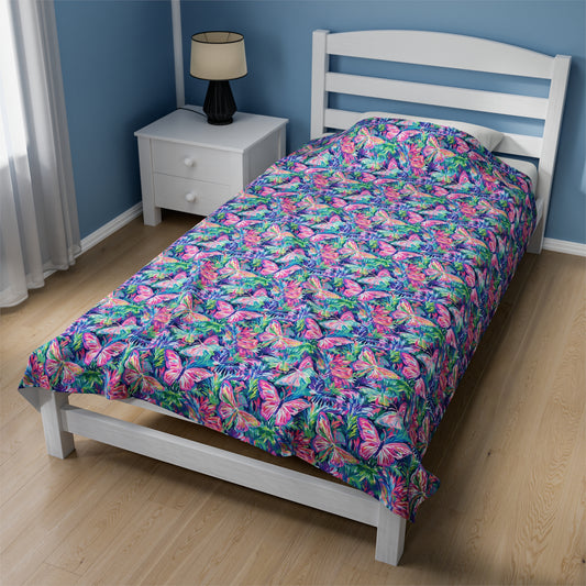Fluttering Rainbows: Vibrant Watercolor Butterflies in Flight Velveteen Plush Blanket 3 Sizes