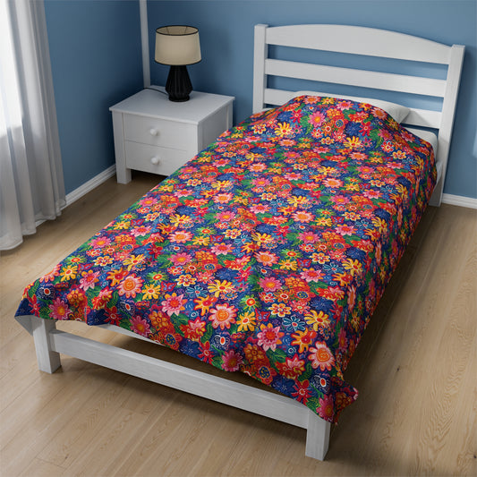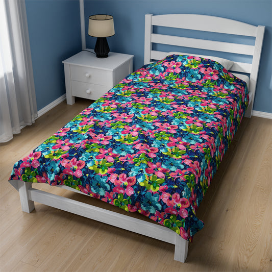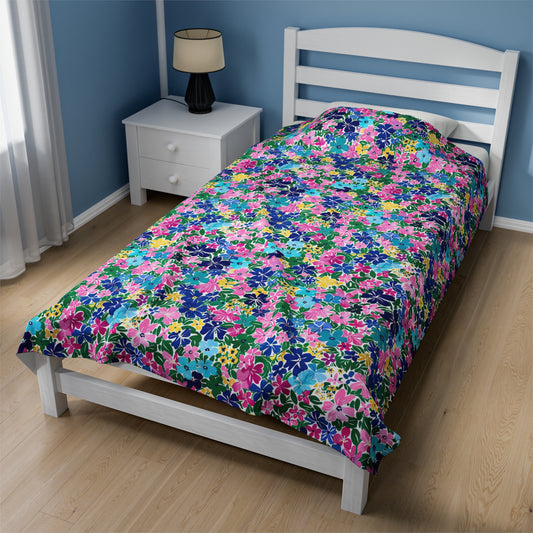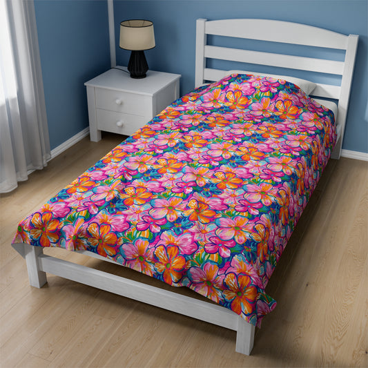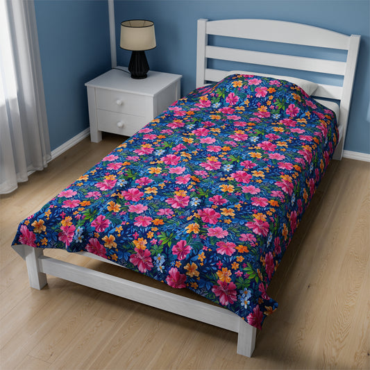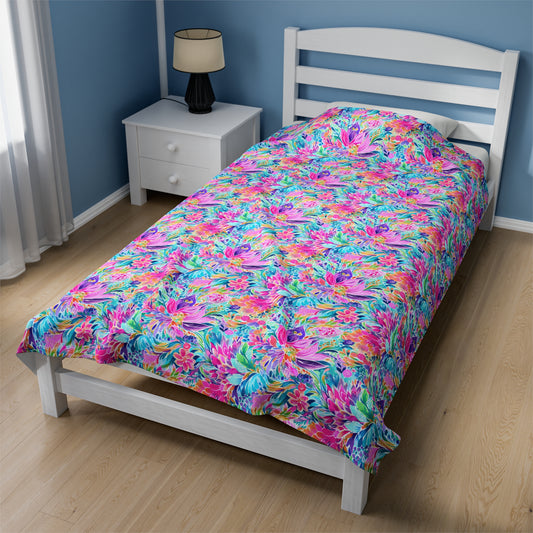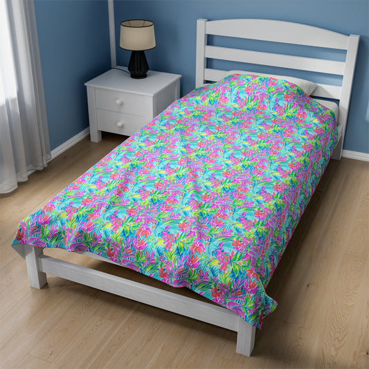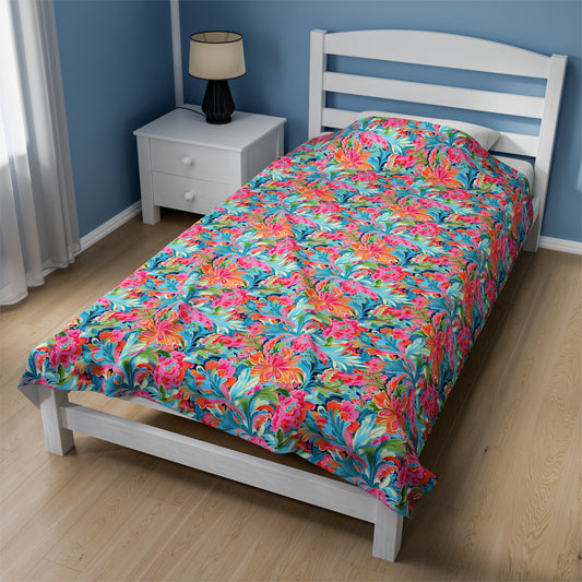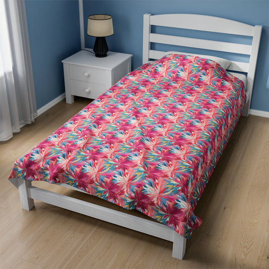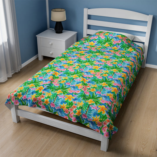 Tropical Burst: Vibrant Summer Flowers in Full Bloom Velveteen Plush Blanket 3 Sizes