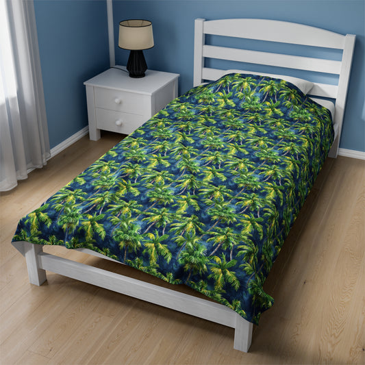 Midnight Palms: Silhouetted Palm Trees Against a Nighttime Sky Velveteen Plush Blanket 3 Sizes
