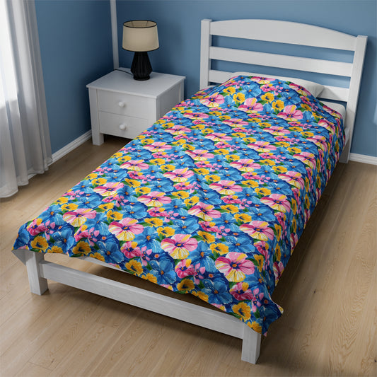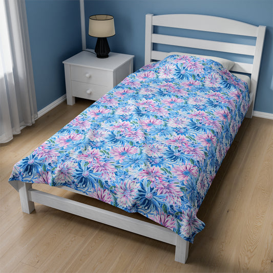 Pastel Blossom Symphony: Spring Flowers in Soft Pink and Blue Hues Velveteen Plush Blanket 3 Sizes