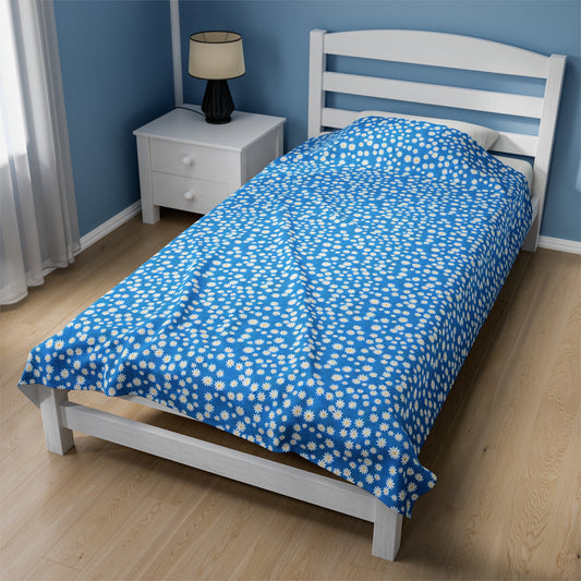 Skys Whisper: Tiny White Daisies on a Serene Blue Velveteen Plush Blanket 3 Sizes