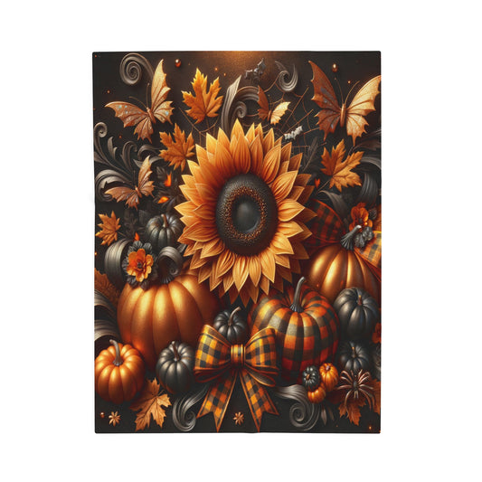 Spooky Fall Pumpkins and Sunflowers Velveteen Plush Blanket 3 Sizes
