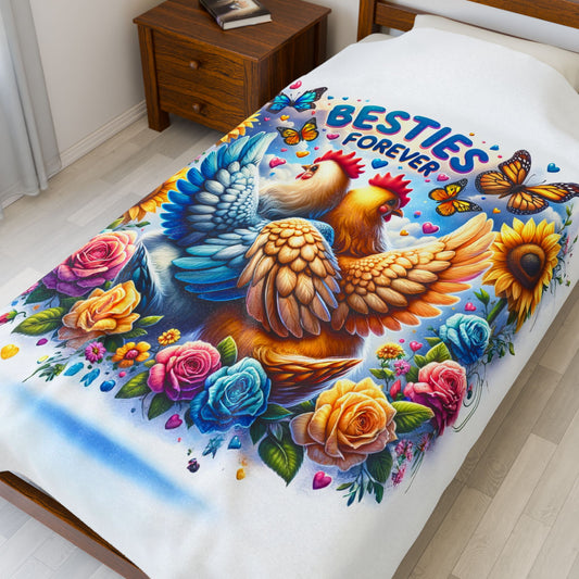 Besties Forever Chickens Best Friends Affirmation Quote, Cute Best Friend Velveteen Plush Blanket 3 Sizes