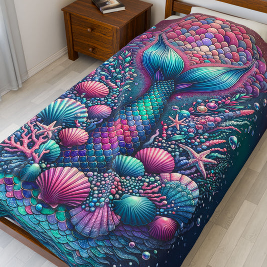 Mermaid Scale Underwater Ocean Glittery Pastel Iridescent Beach Velveteen Plush Blanket 3 Sizes