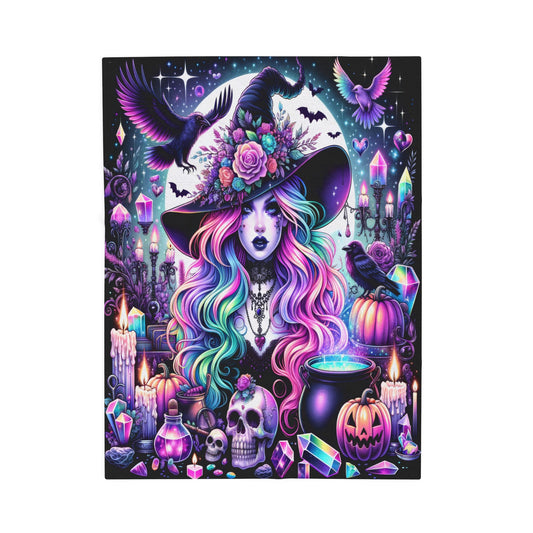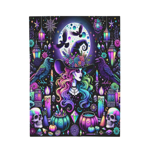 Witchy Women Halloween Neon Nights Velveteen Plush Blanket 3 Sizes