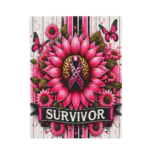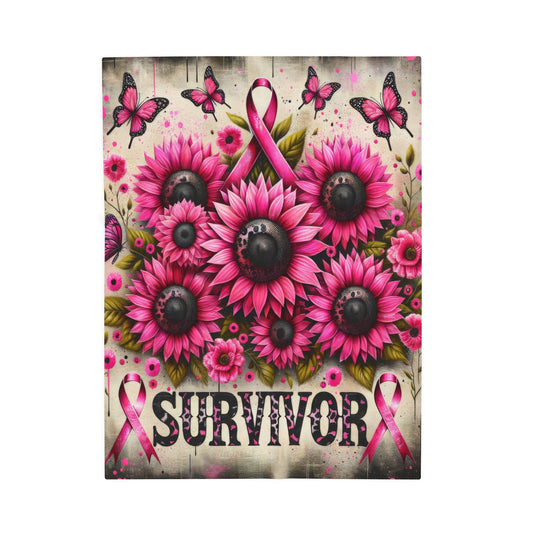 Breast Cancer Survivor Pink Ribbon Sunflowers Velveteen Plush Blanket 3 Sizes