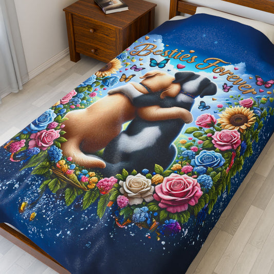 Besties Forever Dogs Best Friends Affirmation Quote, Cute Best Friend Velveteen Plush Blanket 3 Sizes