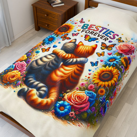 Besties Forever Cats Best Friends Affirmation Quote, Cute Best Friend Velveteen Plush Blanket 3 Sizes