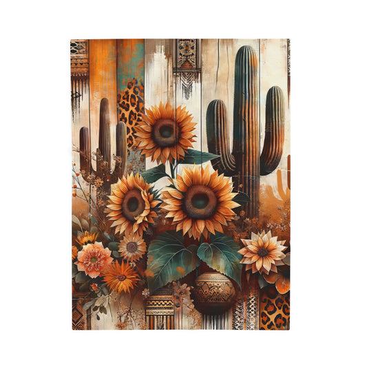 Southwestern Catcus Sunflowers Western Velveteen Plush Blanket 3 Sizes
