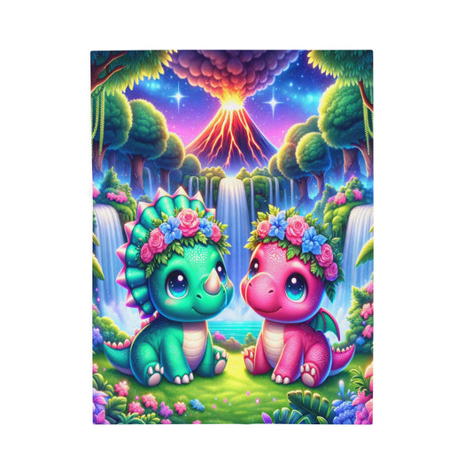 Cute Baby Dino Dinosaur Friends Velveteen Plush Blanket 3 Sizes