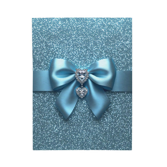Glitter Teal Blue Bow and Heart Jewels Velveteen Plush Blanket 3 Sizes