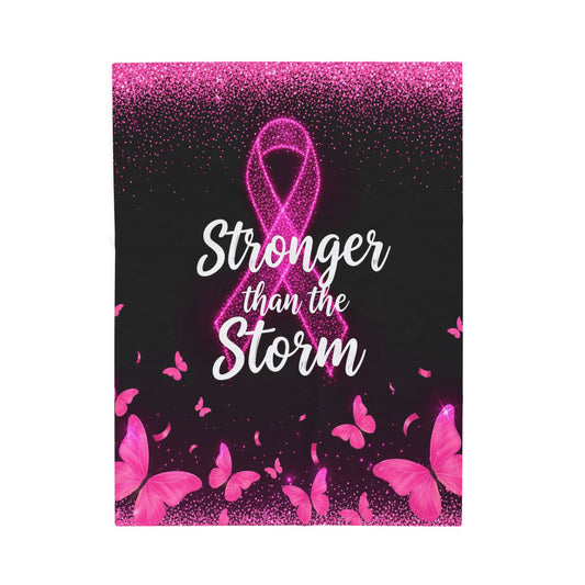 Strong Than The Storm Breast Cancer Survivor Pink Ribbon Sunflowers Velveteen Plush Blanket 3 Sizes