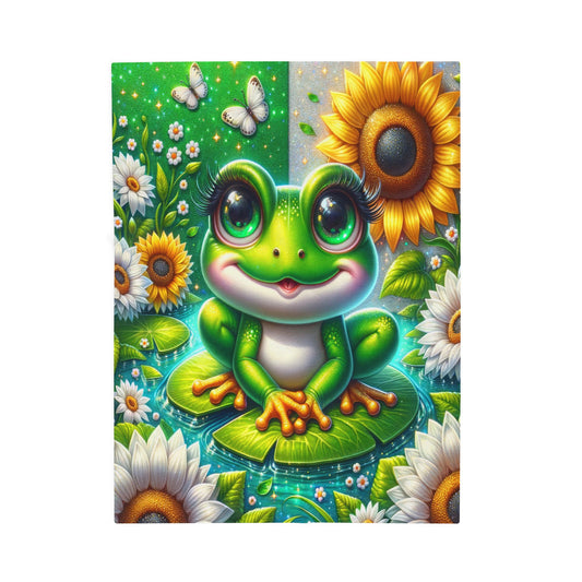 Cute Baby Frog on Lilly Pad Velveteen Plush Blanket 3 Sizes