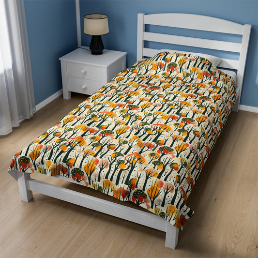 Enchanted Forest of Yellow and Orange Trees on a Speckled Cream Background Velveteen Plush Blanket 3 Sizes