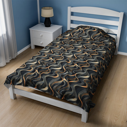 Artistic Fusion of Wavy Lines in a Palette of Silver, Gold, and Dark Hues Velveteen Plush Blanket 3 Sizes