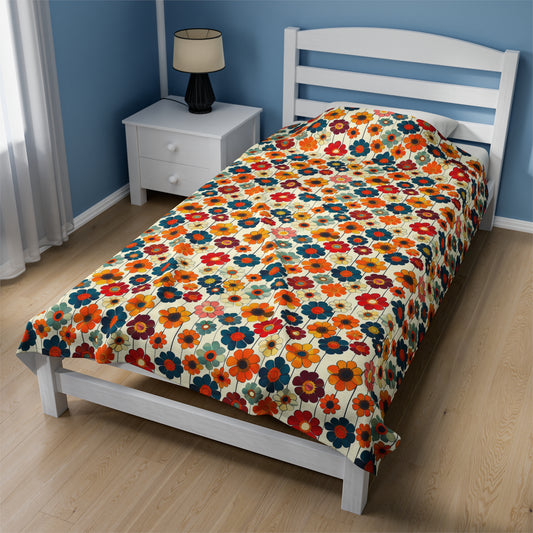 Blooming Joy Vibrant Retro Floral Pattern Velveteen Plush Blanket 3 Sizes