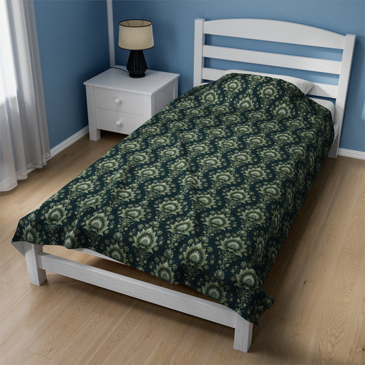 Emerald Oasis in Lush Paisley and Floral Mandala in Soothing Green Tones Velveteen Plush Blanket 3 Sizes