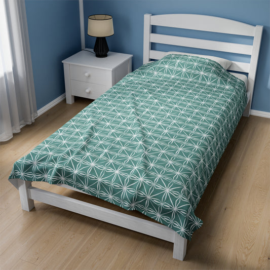Elegant Minimalist Geometric Line Art in White and Teal Pattern Velveteen Plush Blanket 3 Sizes