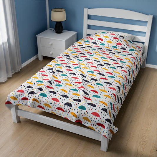 April Showers Parade in A Cheerful Dance of Colorful Umbrellas and Playful Raindrops Velveteen Plush Blanket 3 Sizes