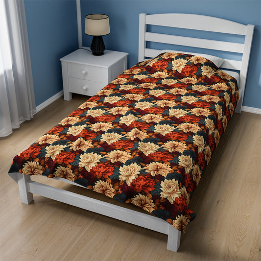 Autumn Elegance Vintage Floral Symphony in Rich Fall Colors Velveteen Plush Blanket 3 Sizes