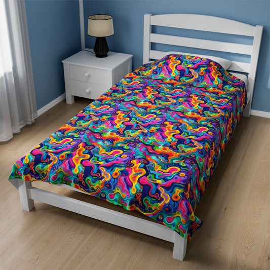 Color Rainbow Fusion Swirl Velveteen Plush Blanket 3 Sizes