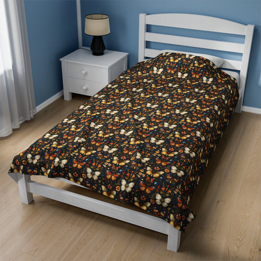 Enchanted Garden of Butterflies and Botanicals in Rich Autumn Hues on a Deep Night Background Velveteen Plush Blanket 3 Sizes