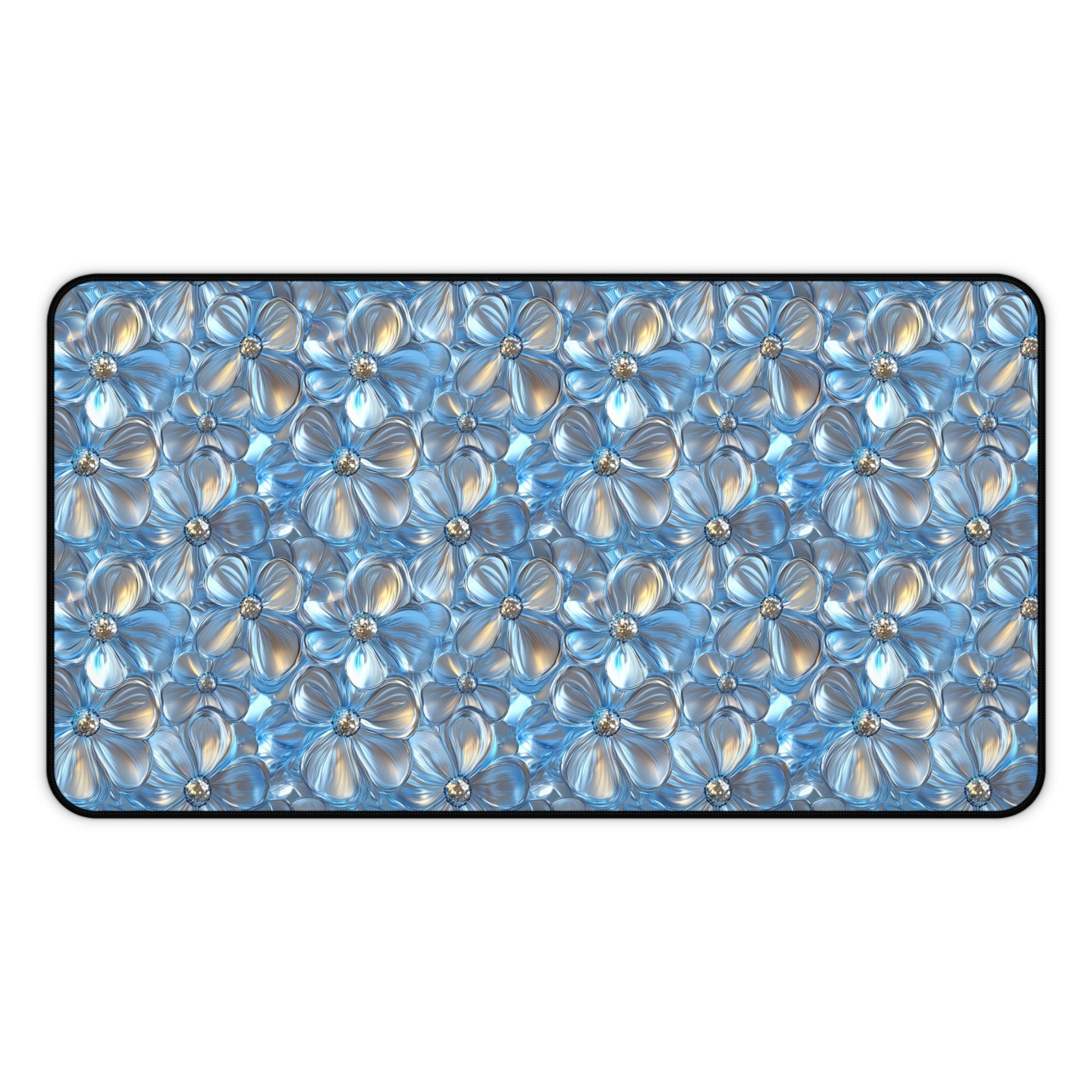 3D Silver Daisies Deskmat , Spring Flowers Desk Decoration, Floral Large Mousepad, Gaming Desk Mat, Desktop Accessory
