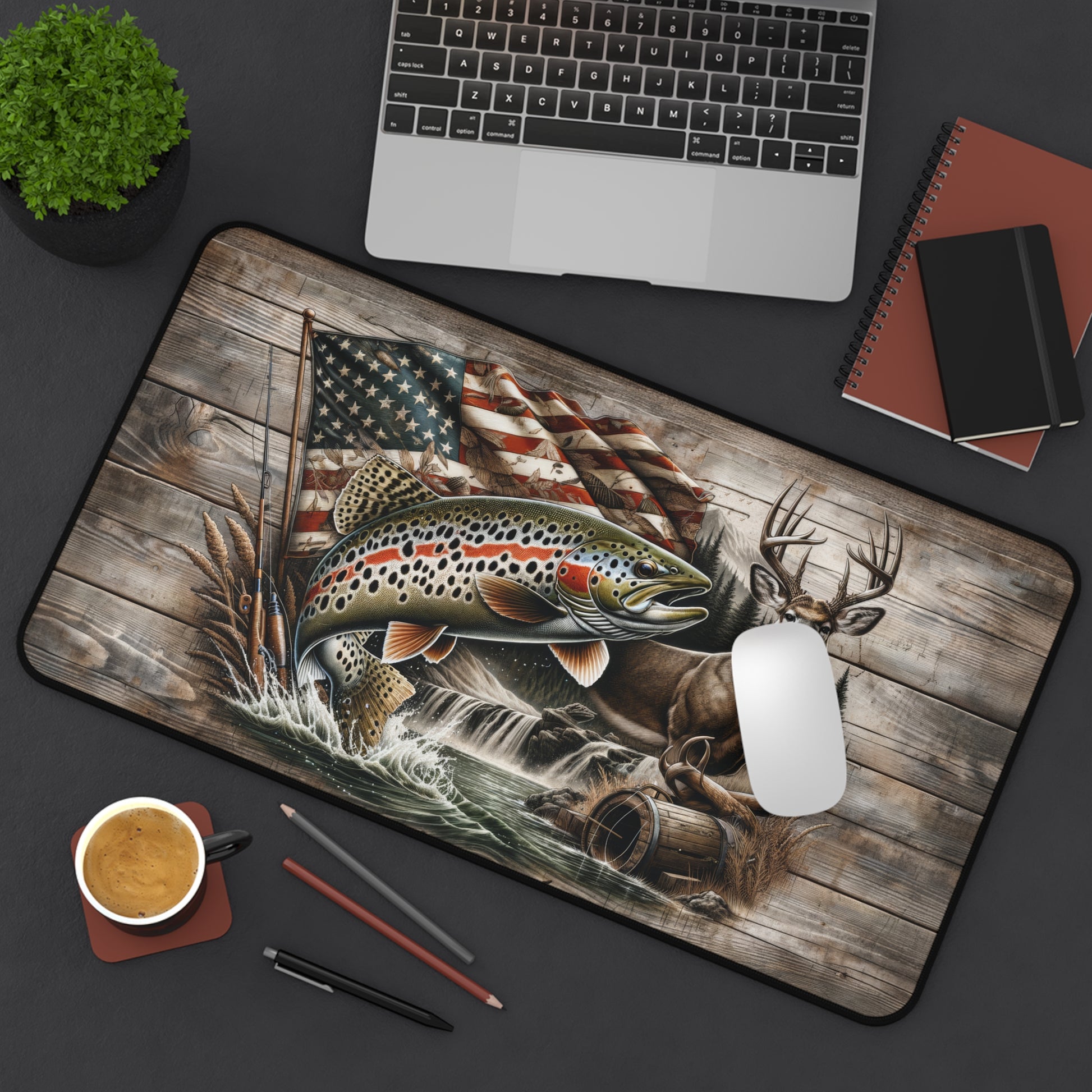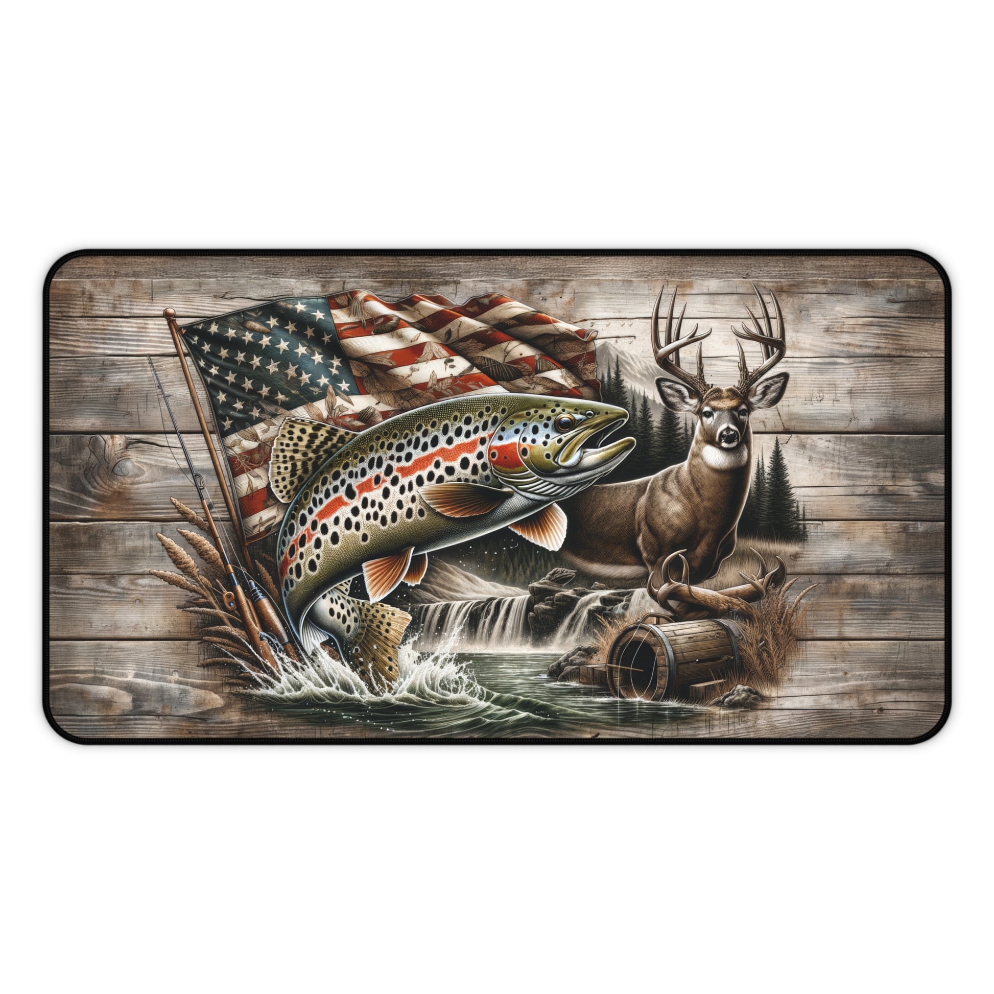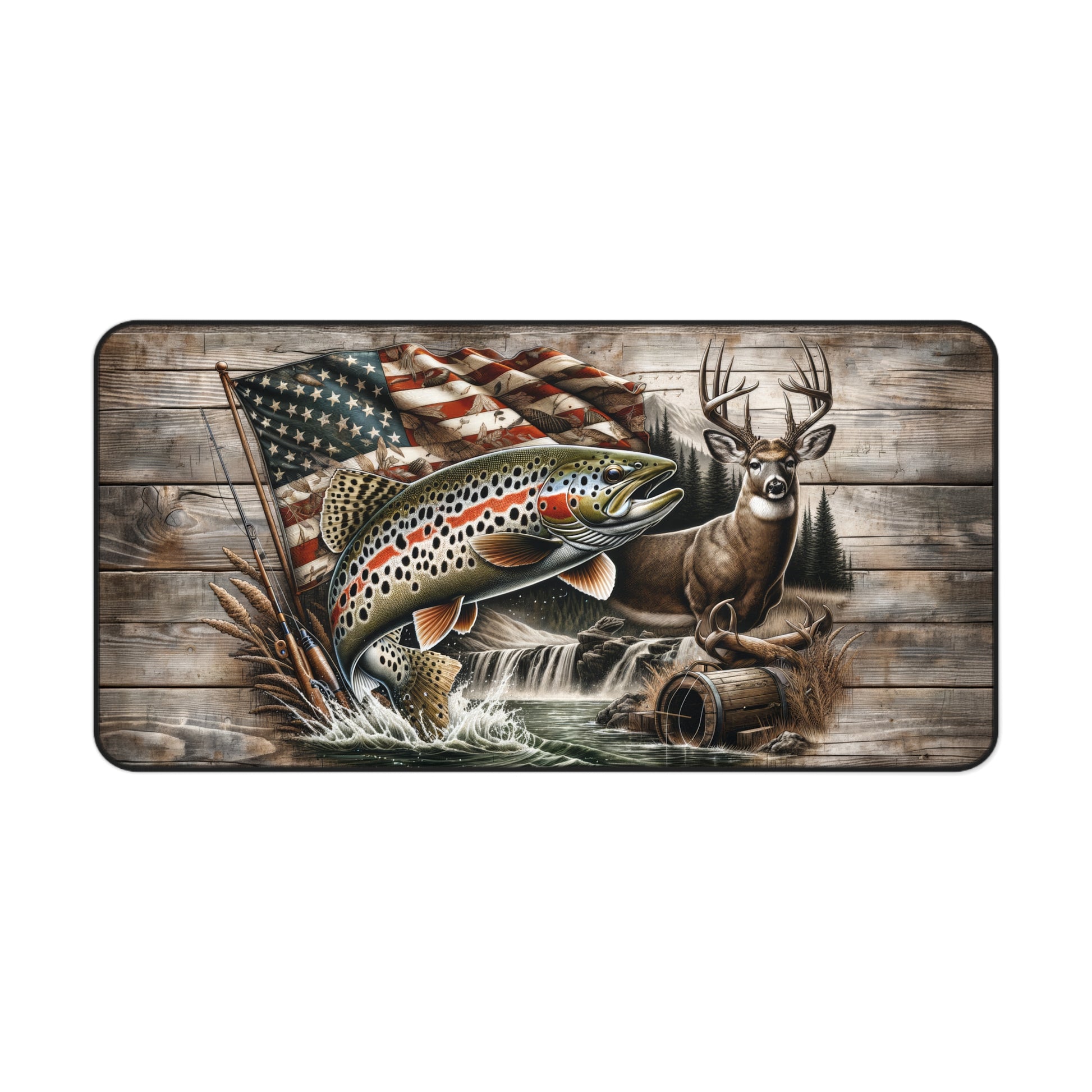 American Flag Trout Fishing Deer Camo Hunting Season Extended Gaming Mouse Pad Desk Mat - 3 Sizes