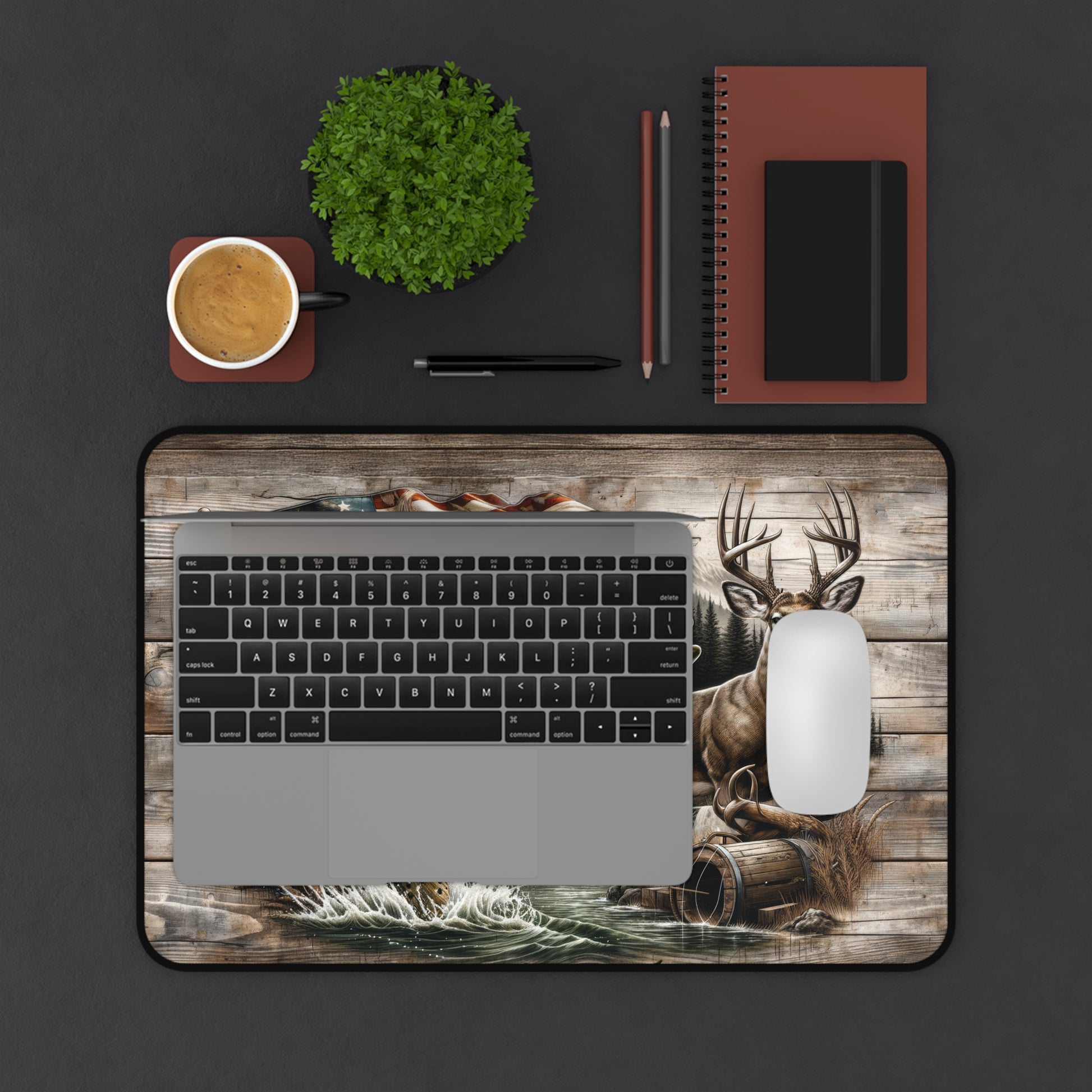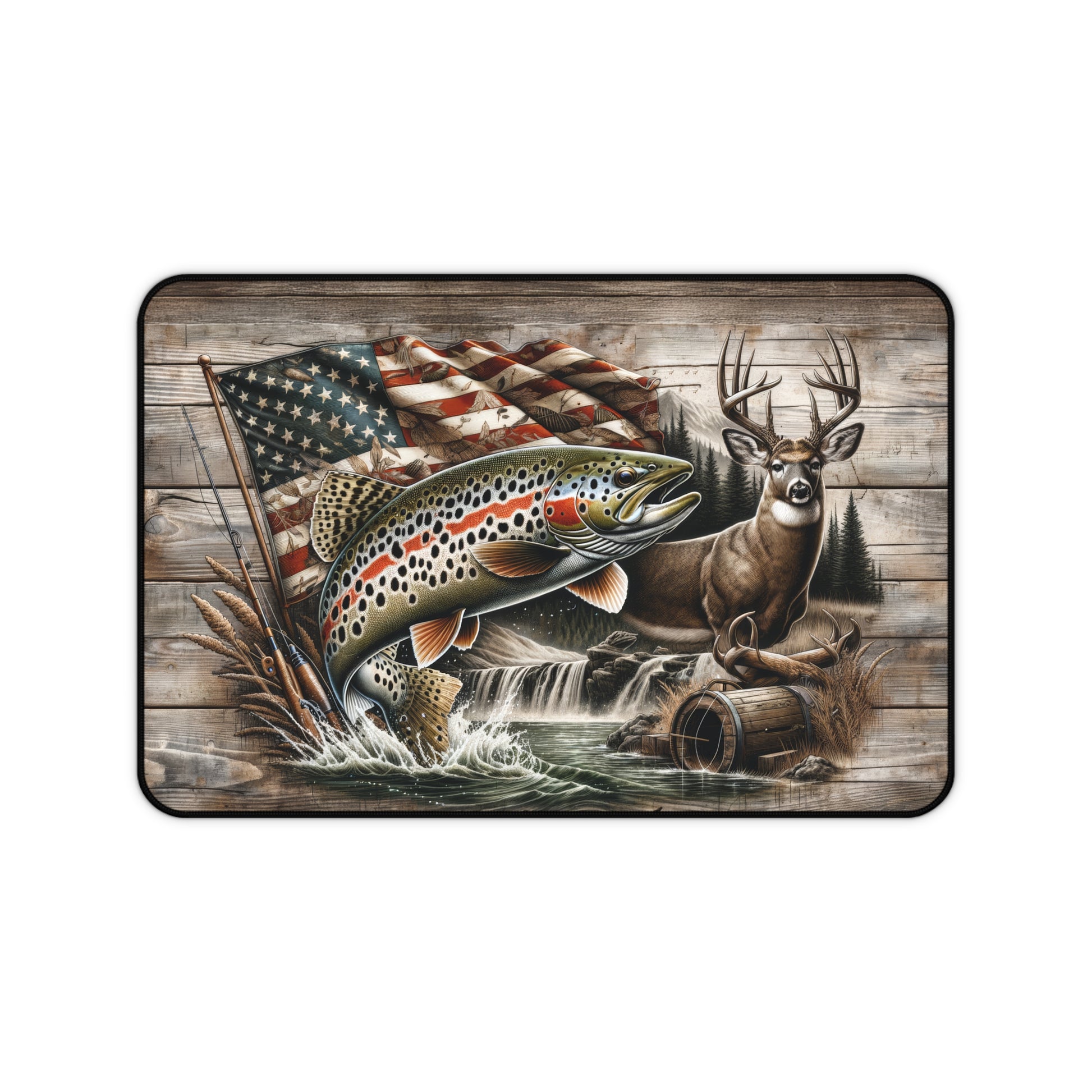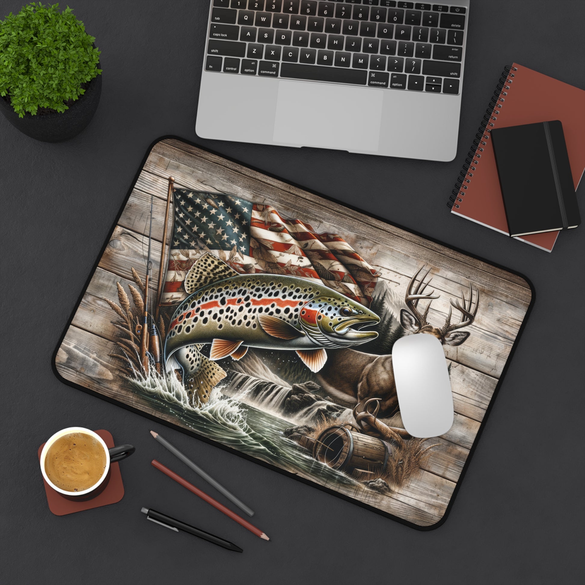 American Flag Trout Fishing Deer Camo Hunting Season Extended Gaming Mouse Pad Desk Mat - 3 Sizes