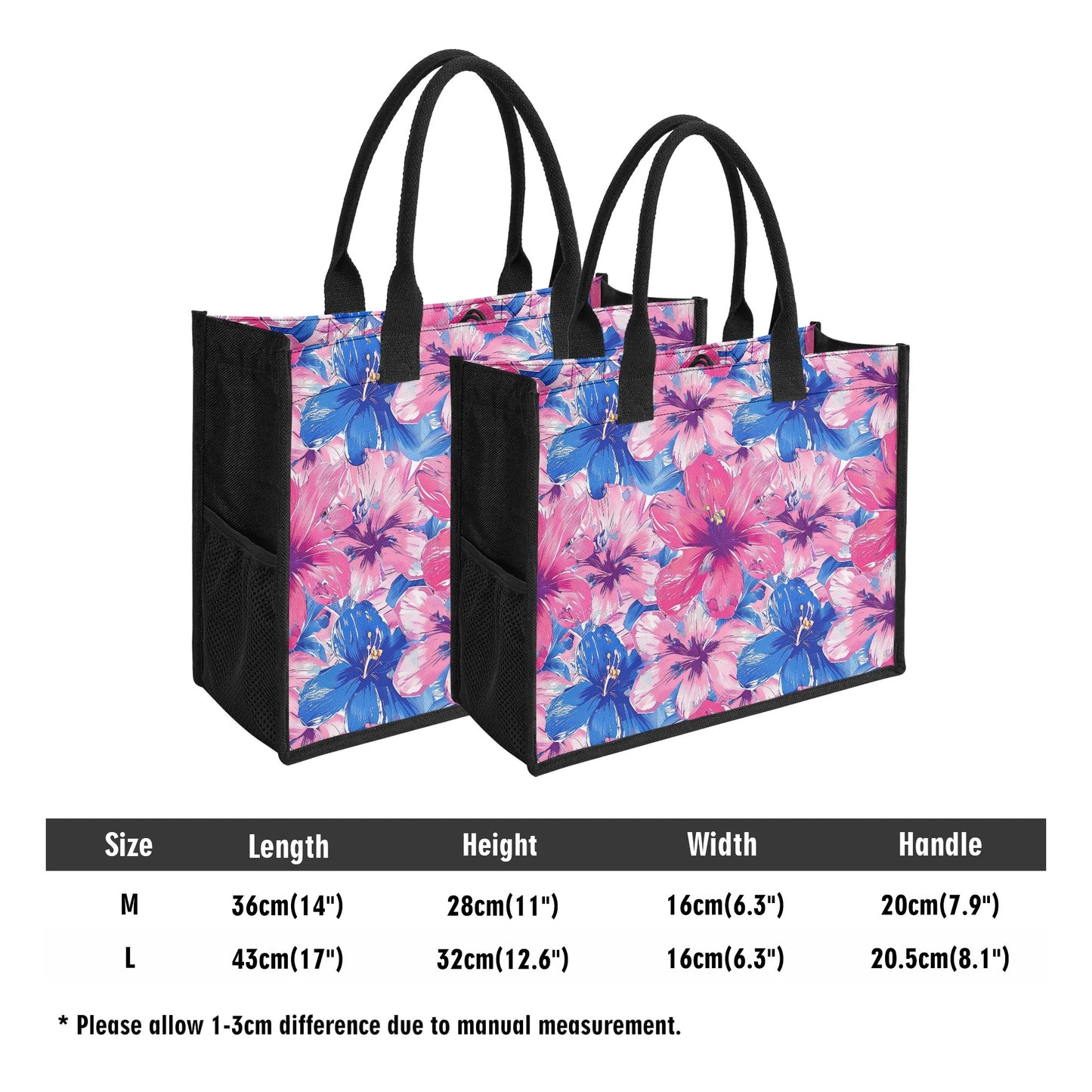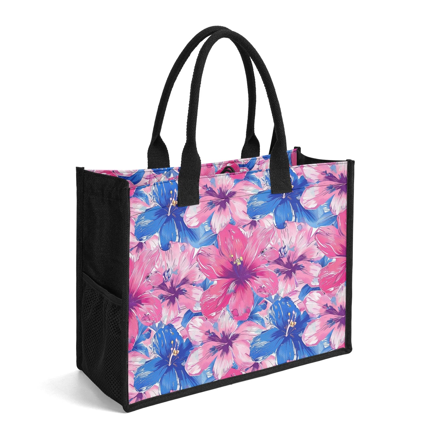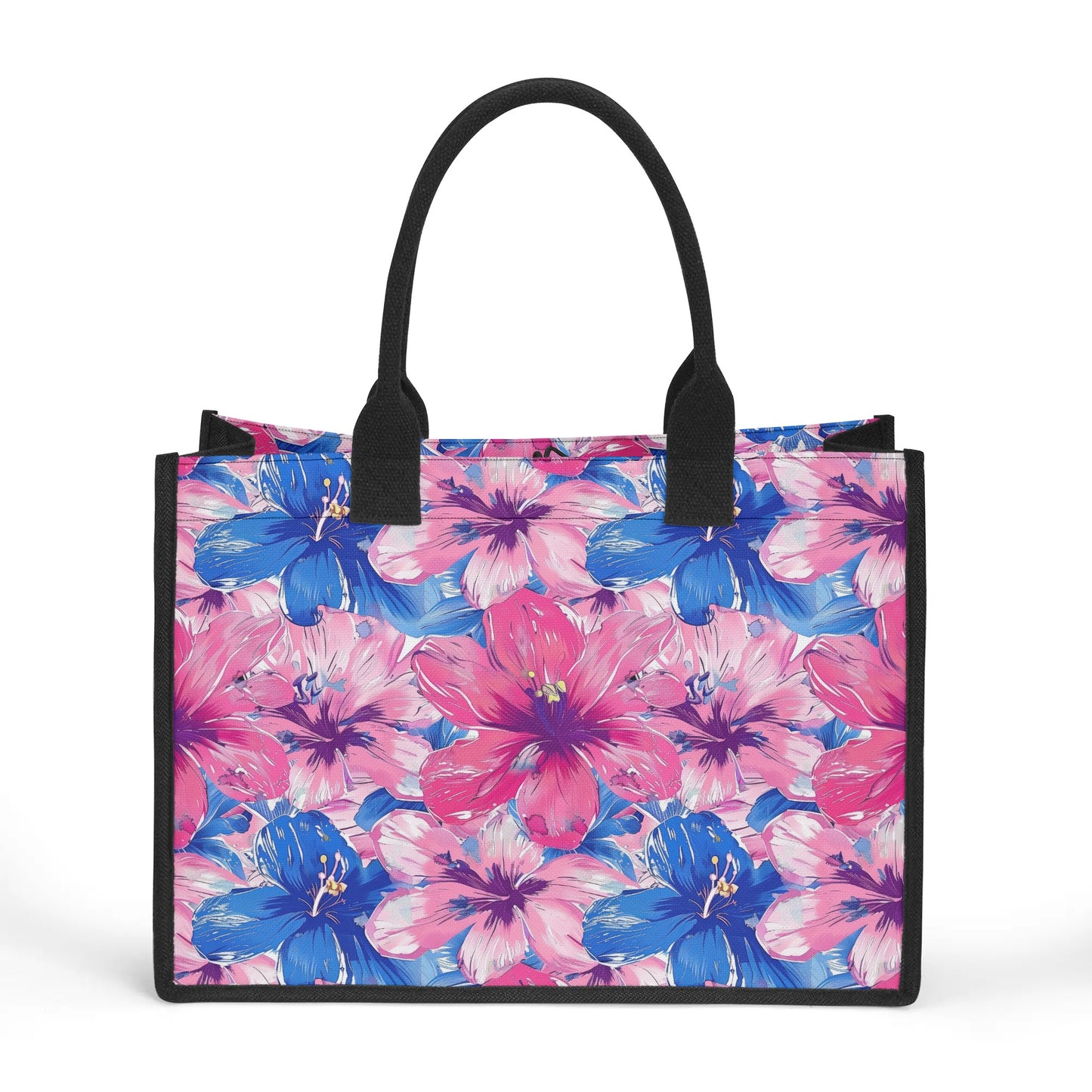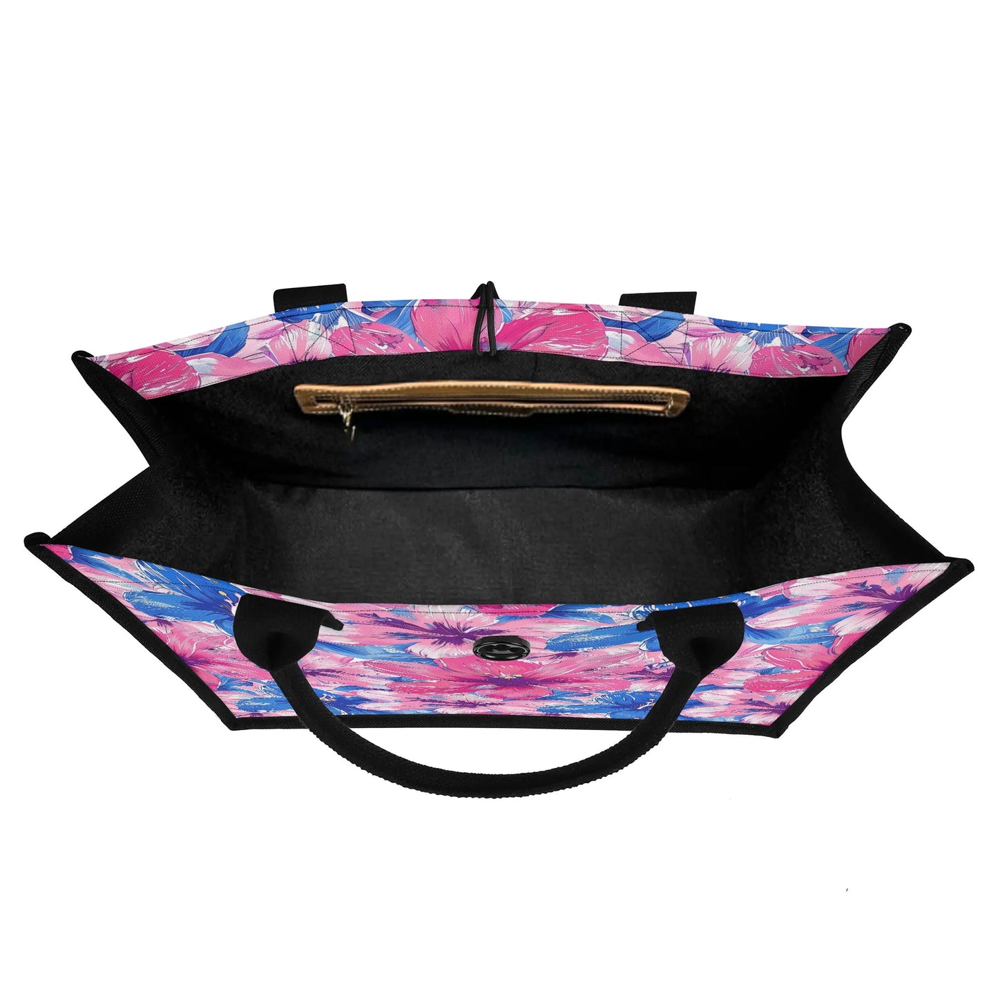 Blooming Bliss: Large Pink and Blue Blossoms in Full Bloom Structured Button Closure Canvas Tote Bag in 2 Sizes