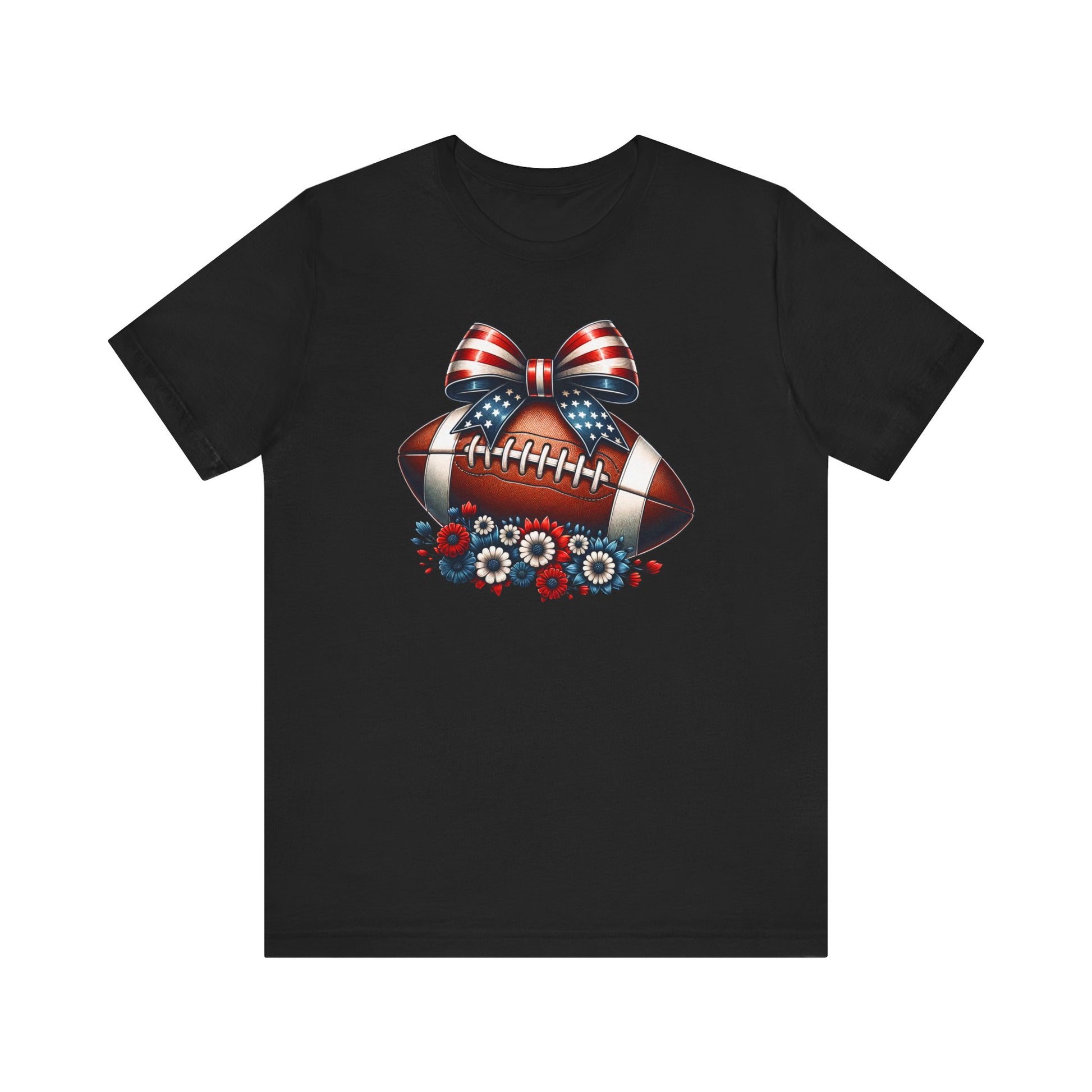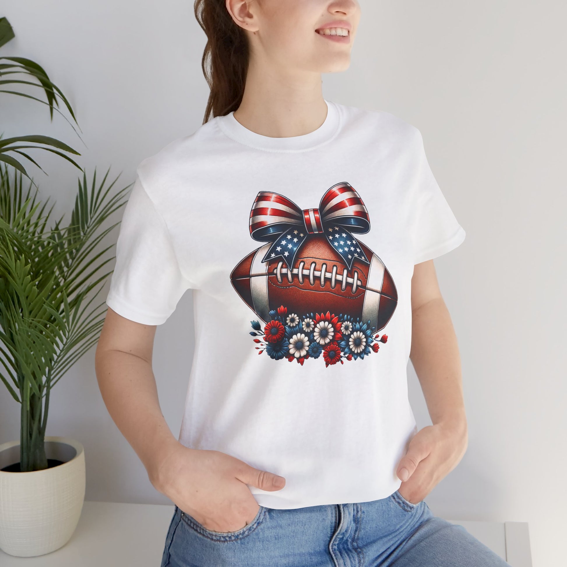 Coquette Bow Patriotic Floral Football Print Jersey Short Sleeve T-shirt