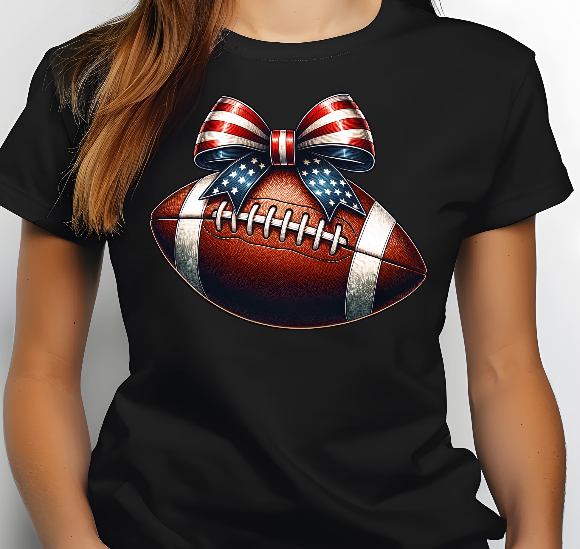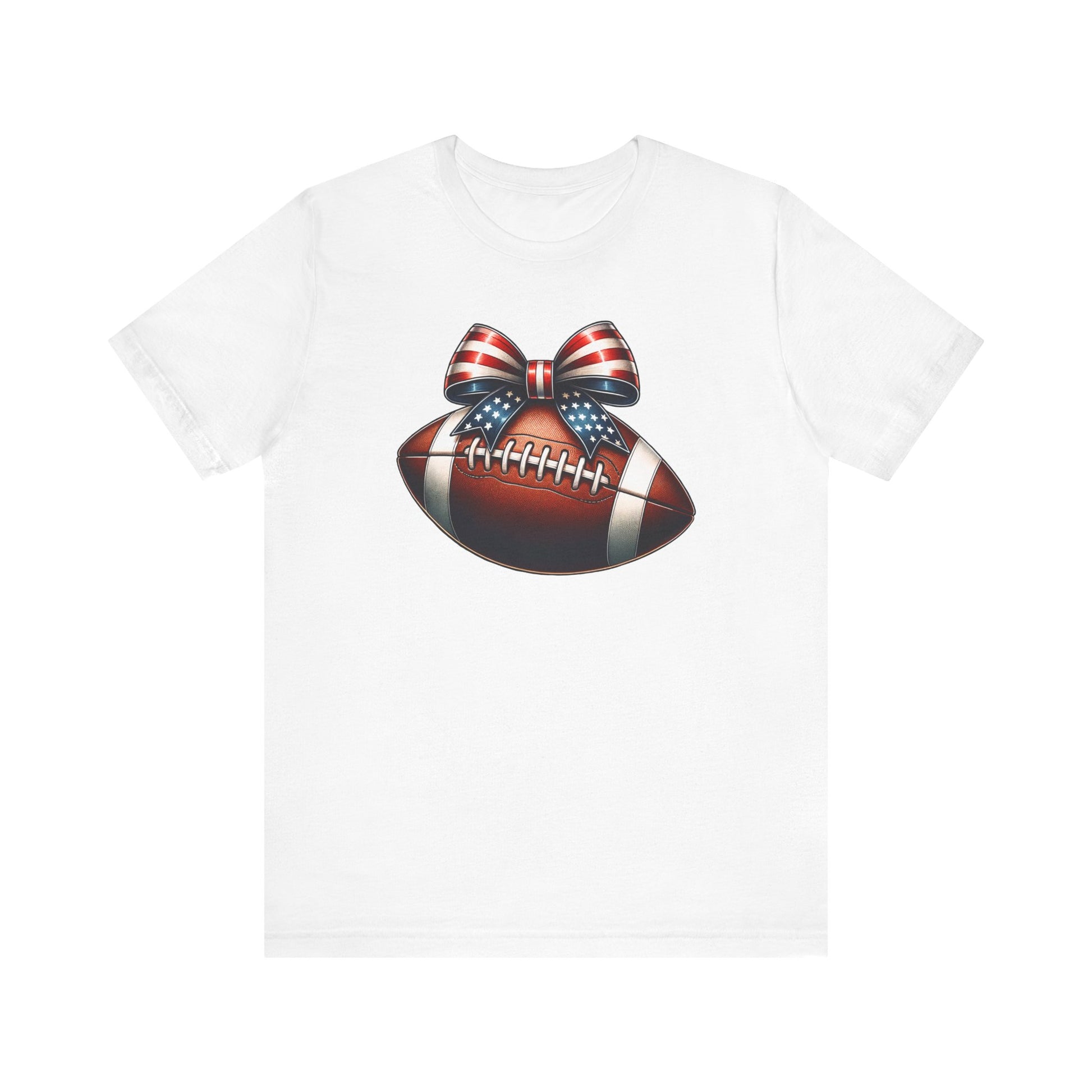 Coquette Bow Patriotic Football Print Jersey Short Sleeve T-shirt
