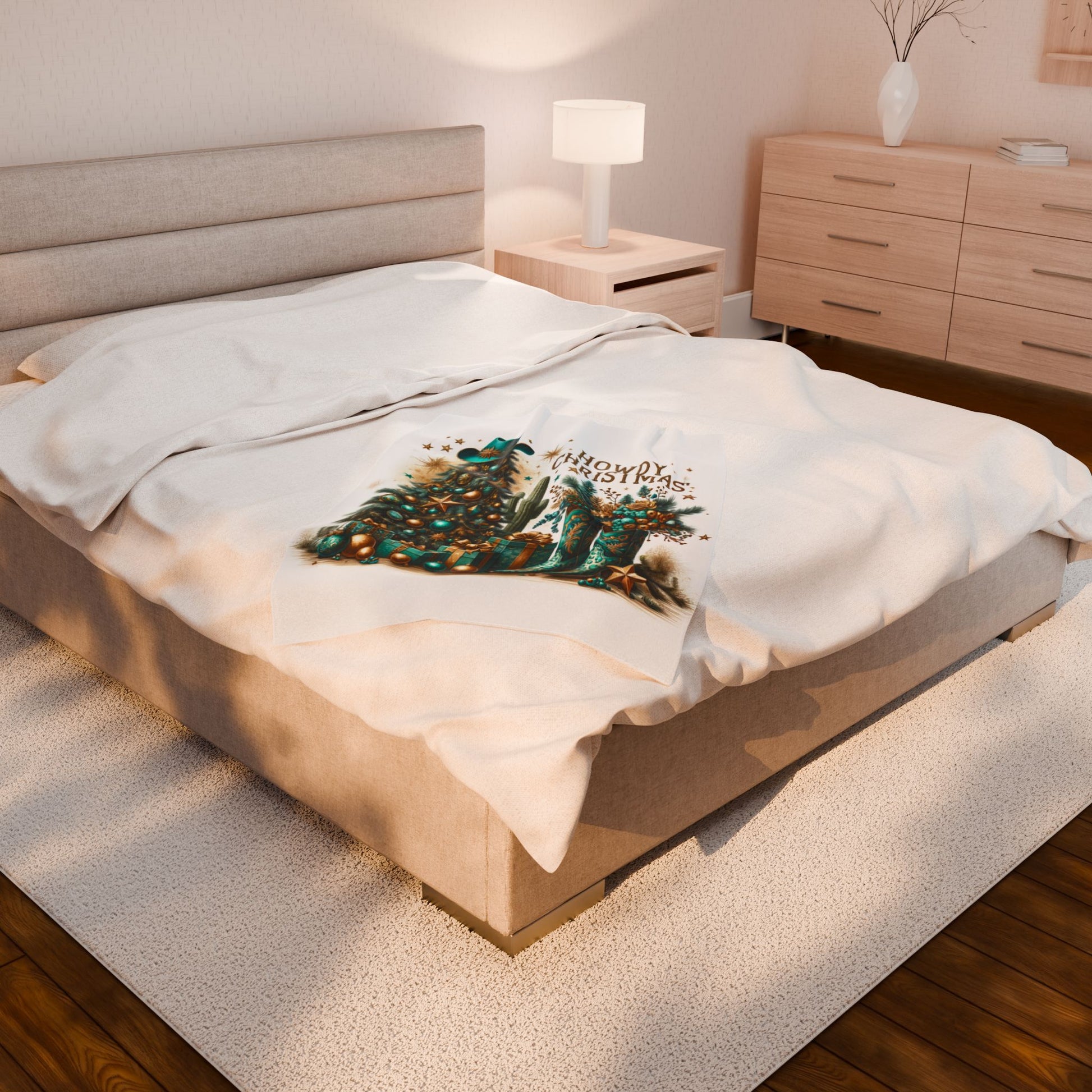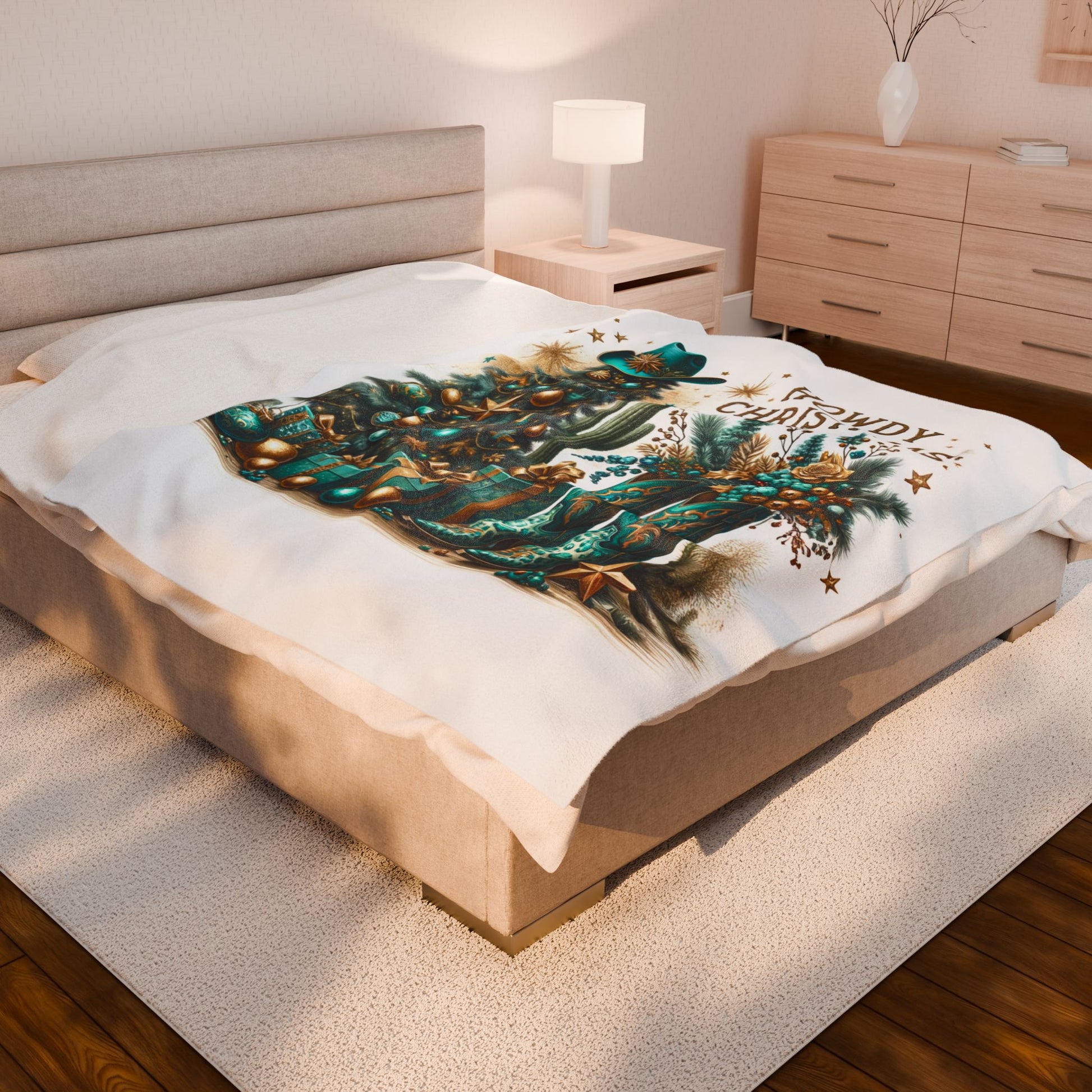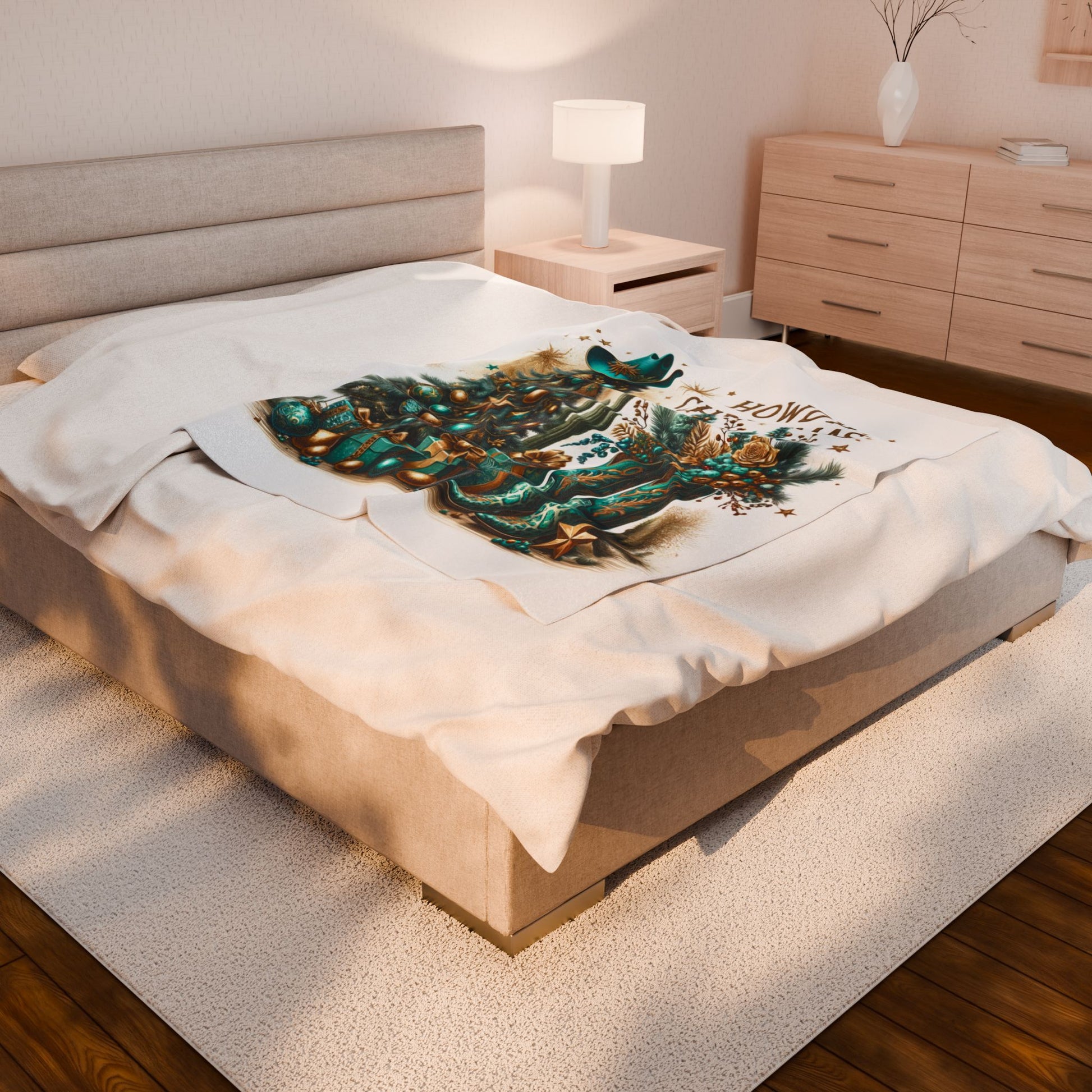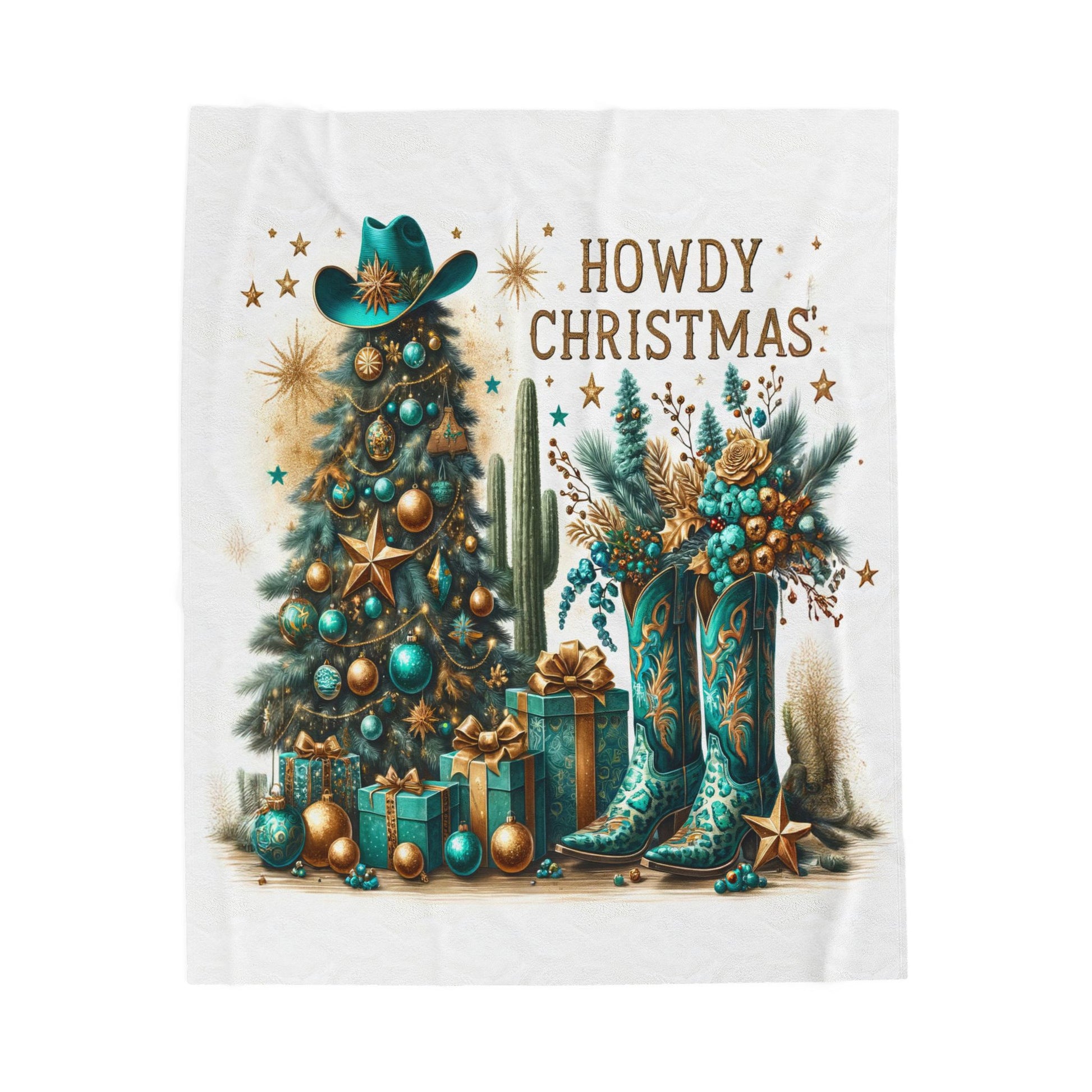 Country Western Howdy Christmas Green and Gold Sparkle Velveteen Plush Blanket 3 Sizes