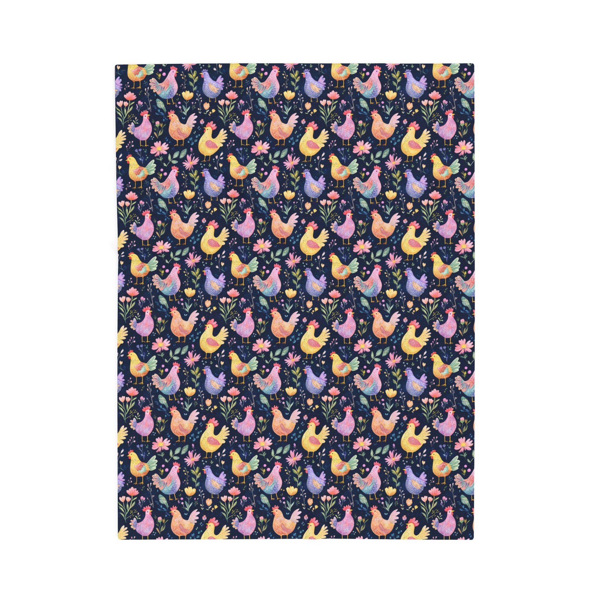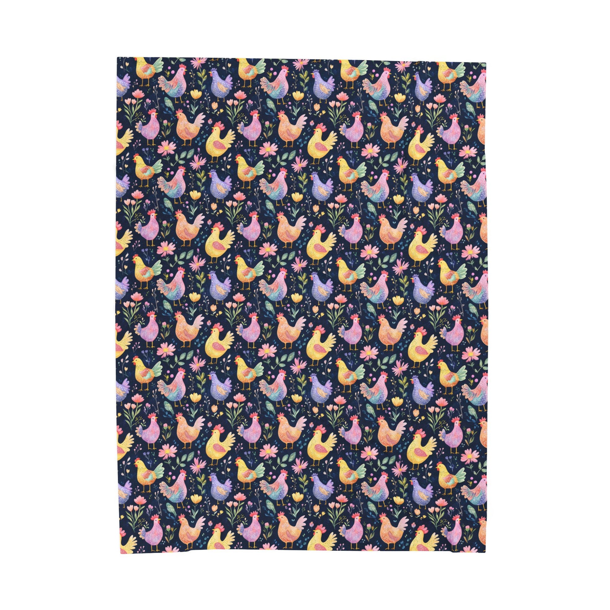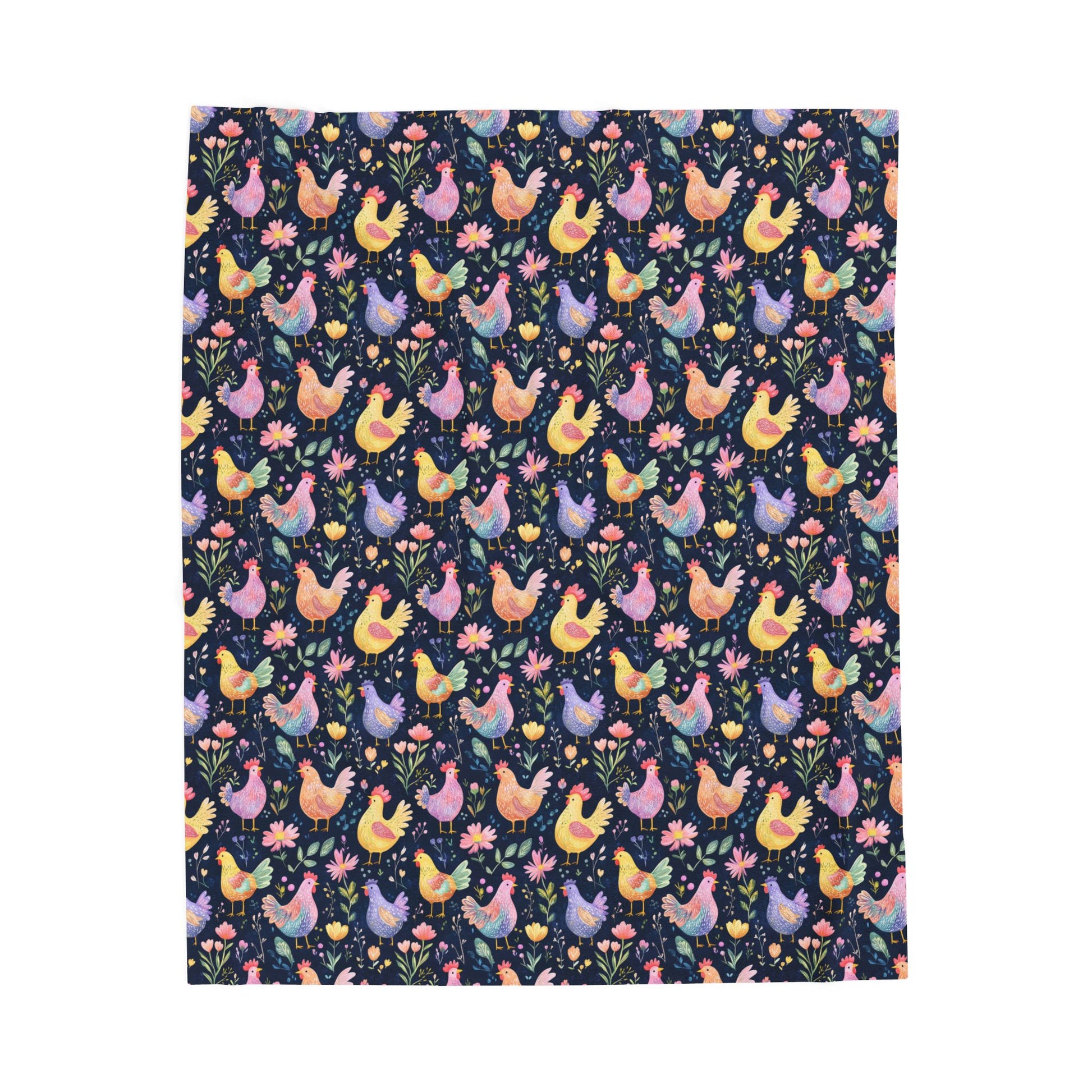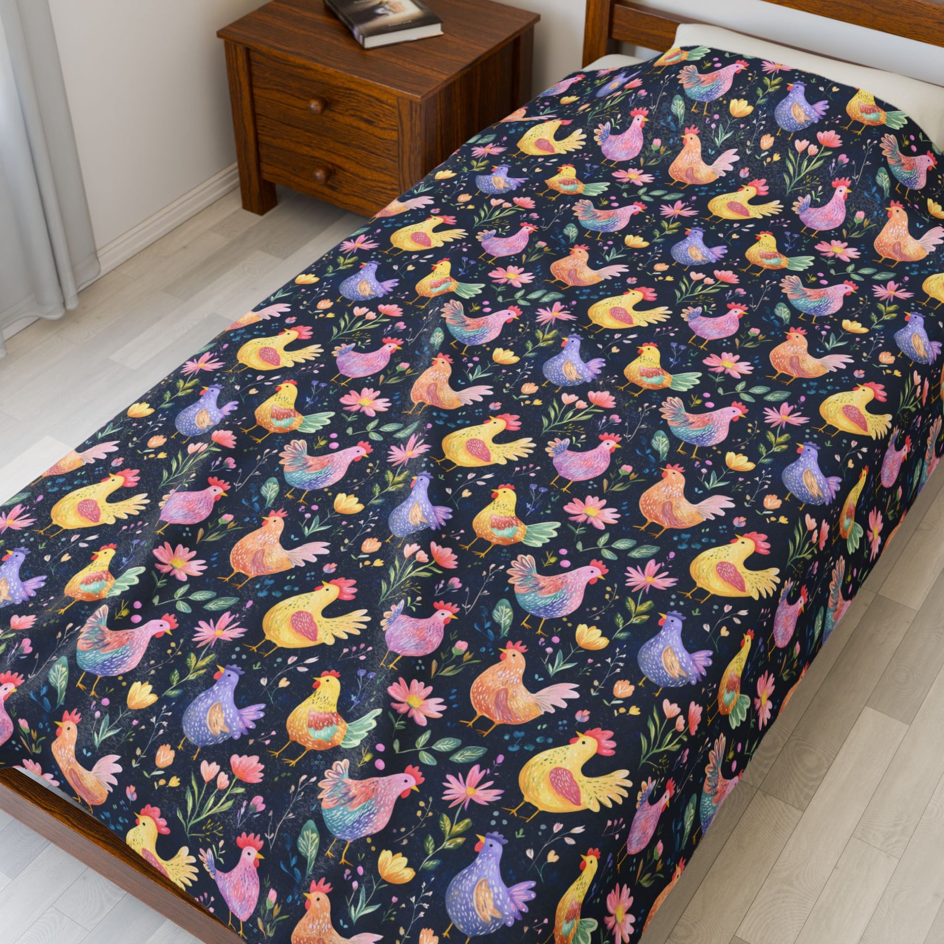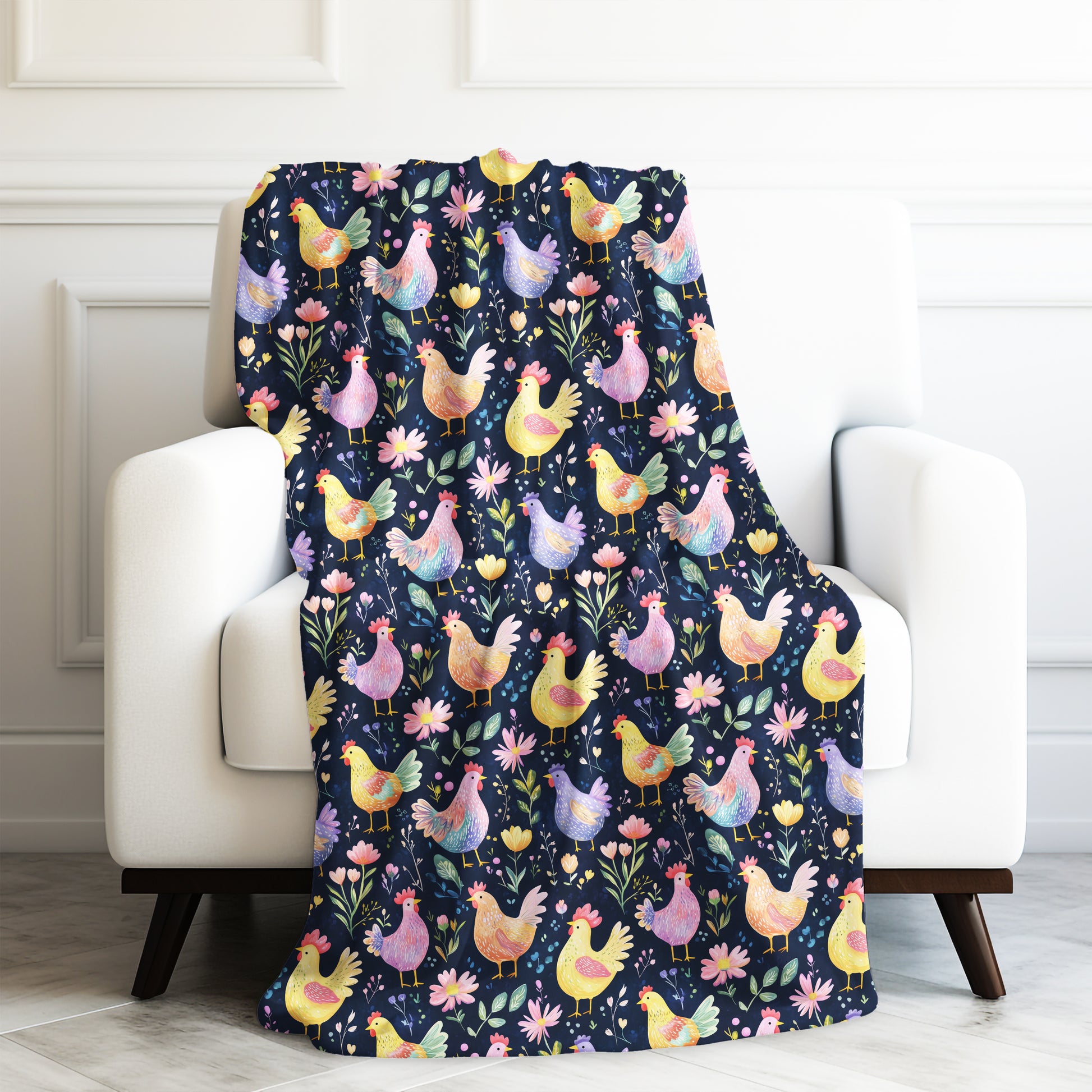Cute Chicken Farm Flock Springtime Flowers Crazy Chickens Velveteen Plush Blanket 3 Sizes