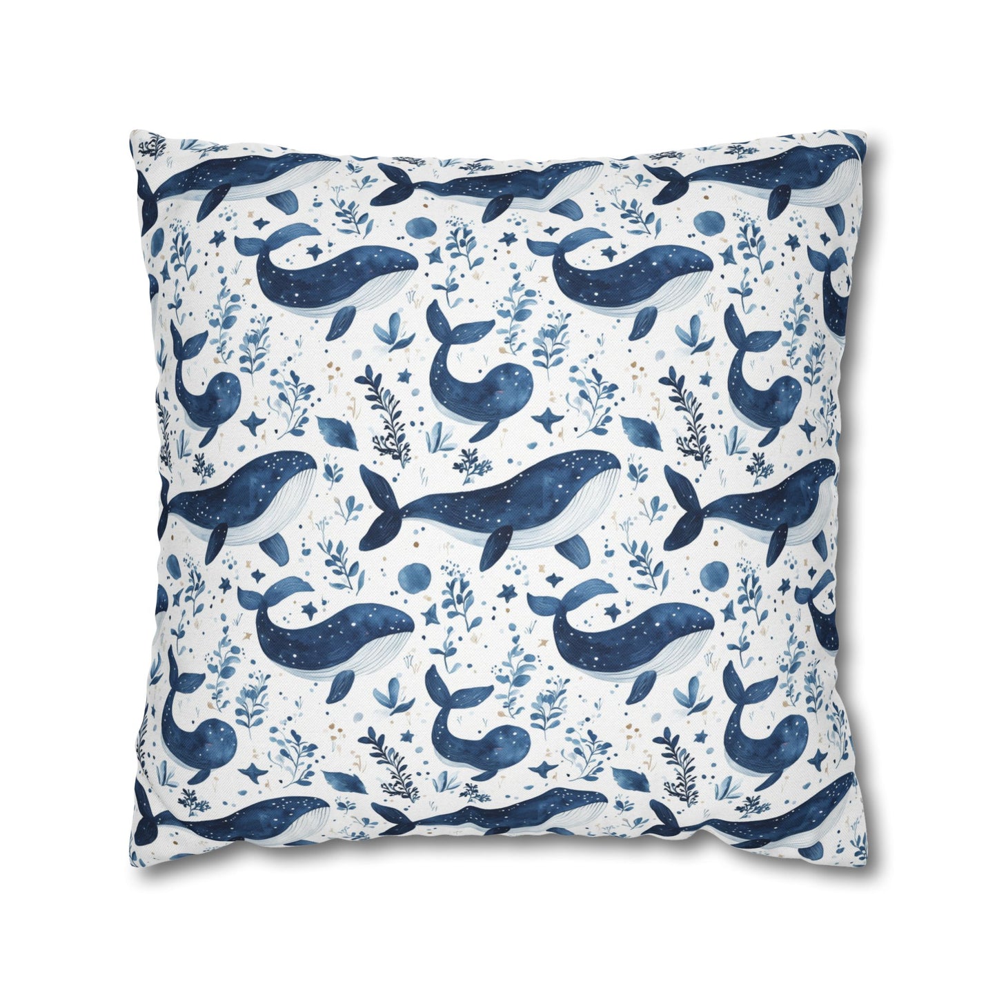 Dreamy Starry Blue Whale Wonderland Spun Polyester Square Pillowcase 4 Sizes