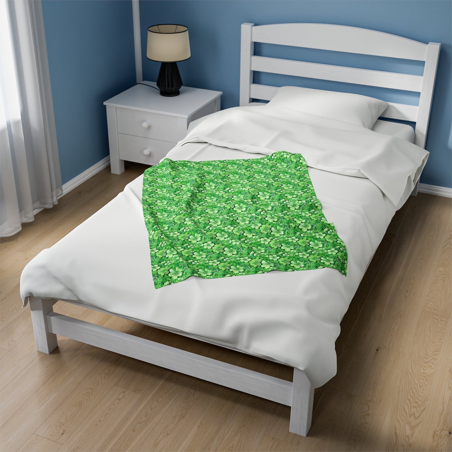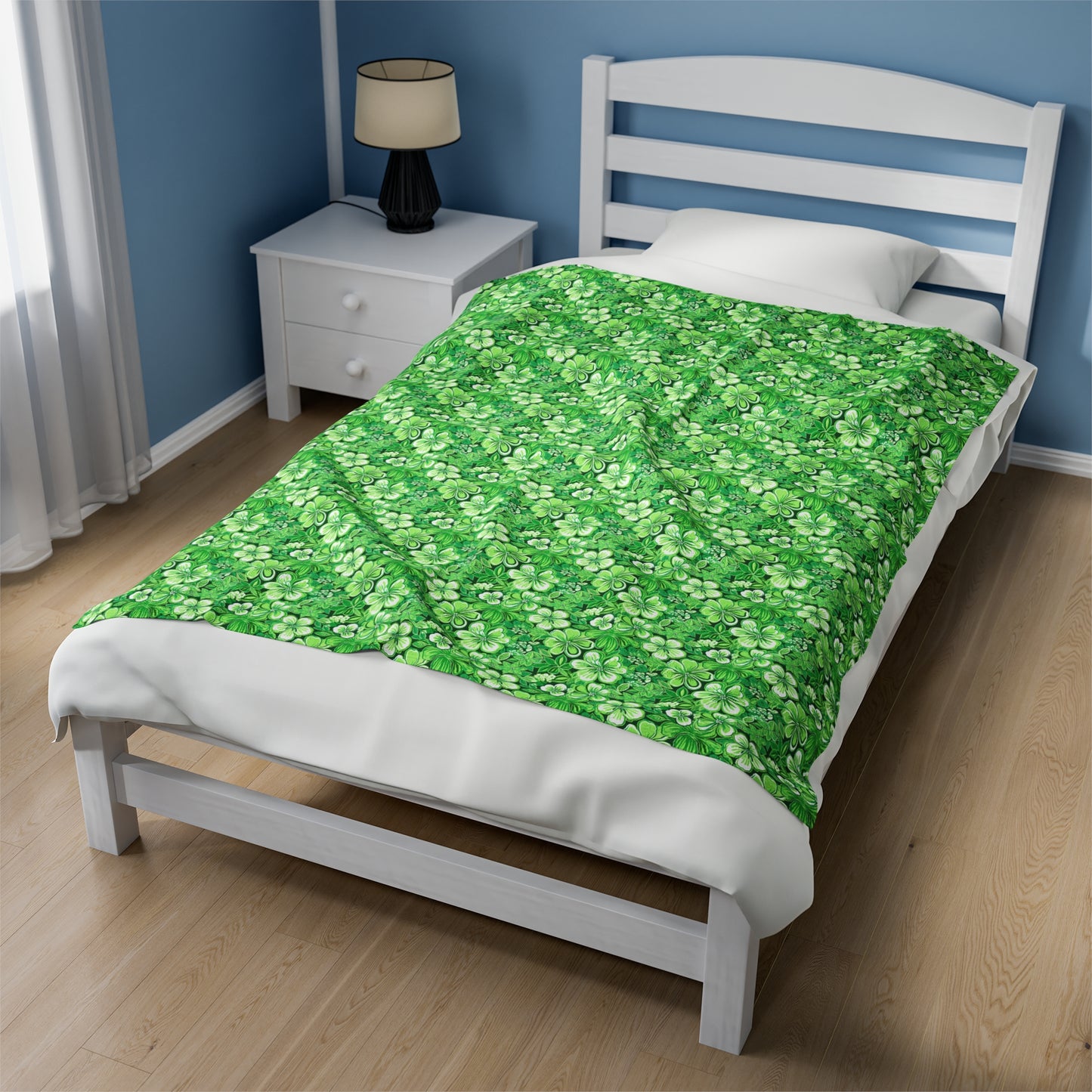 Emerald Essence: Floral Bloom Design in Green Hues Velveteen Plush Blanket 3 Sizes