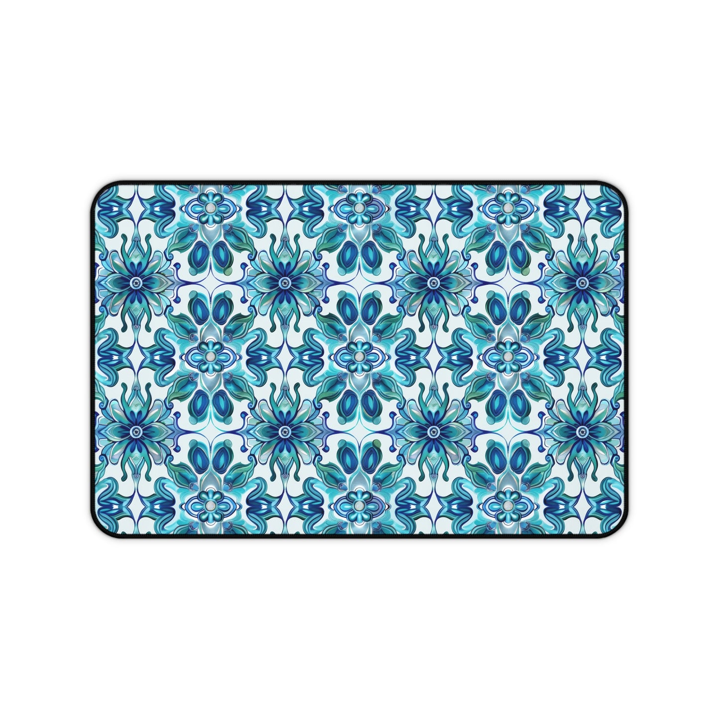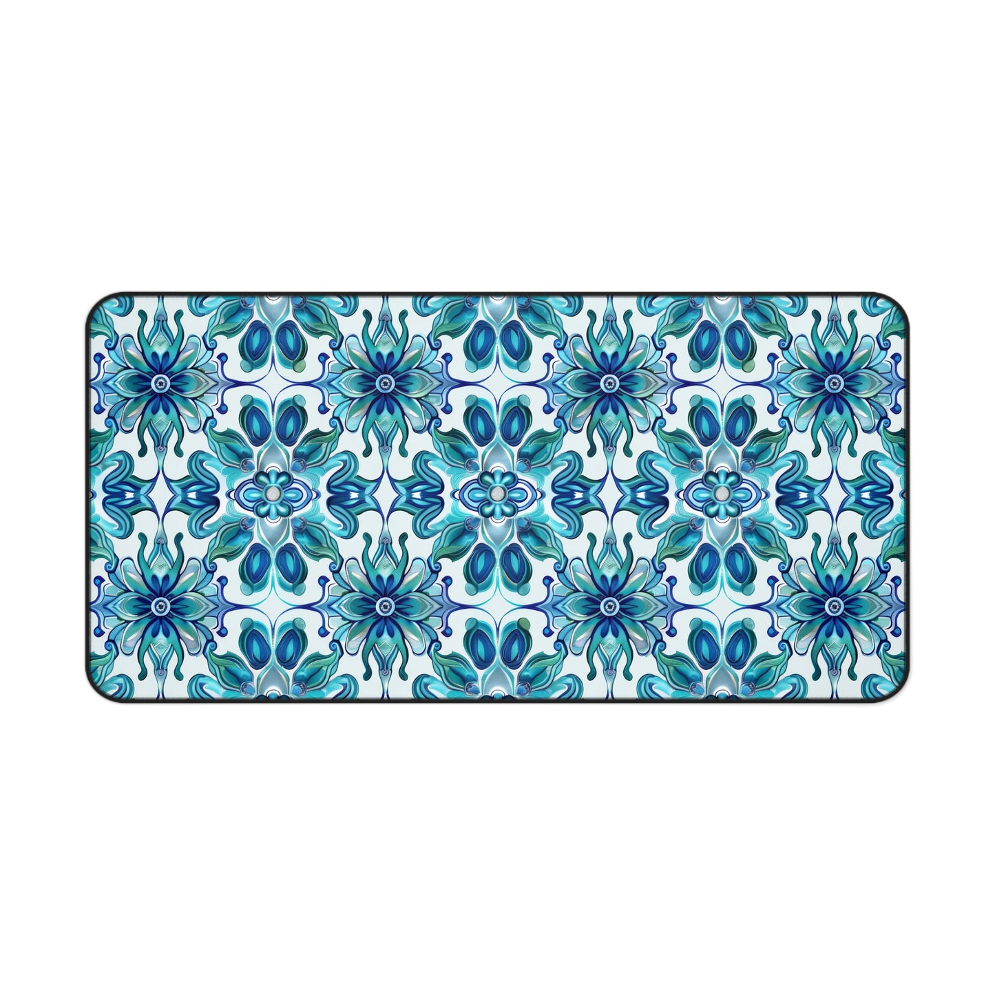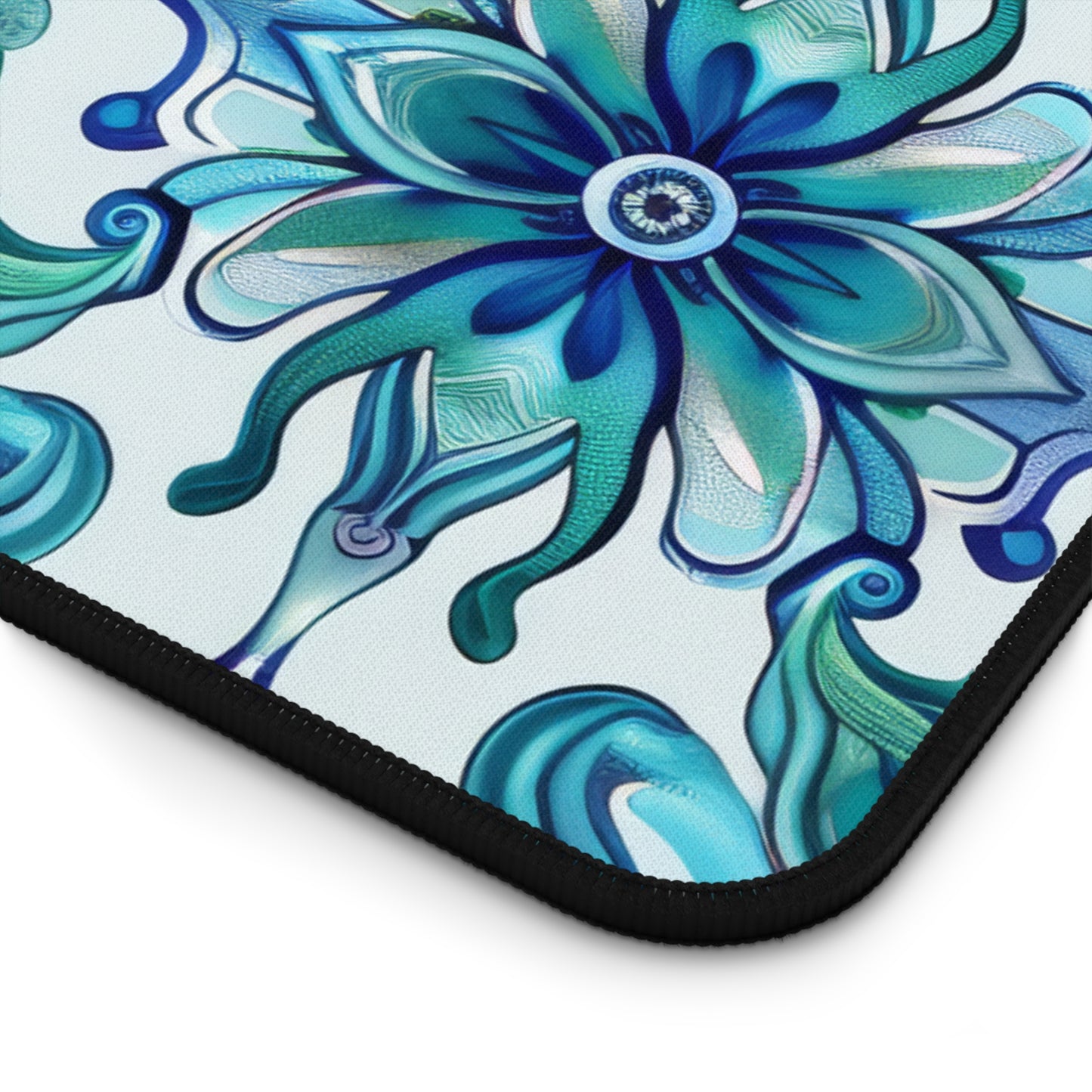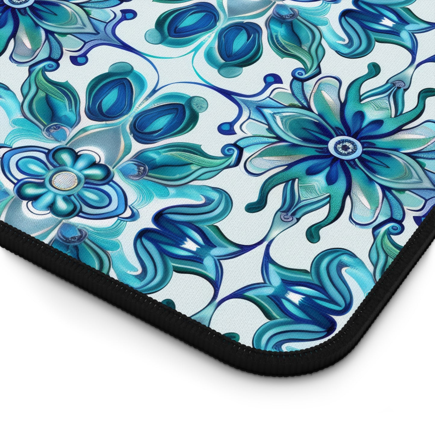 Exquisite Blue Lotus Elegance Floral Mosaic Design Gaming Mouse Pad Desk Mat - 3 Sizes