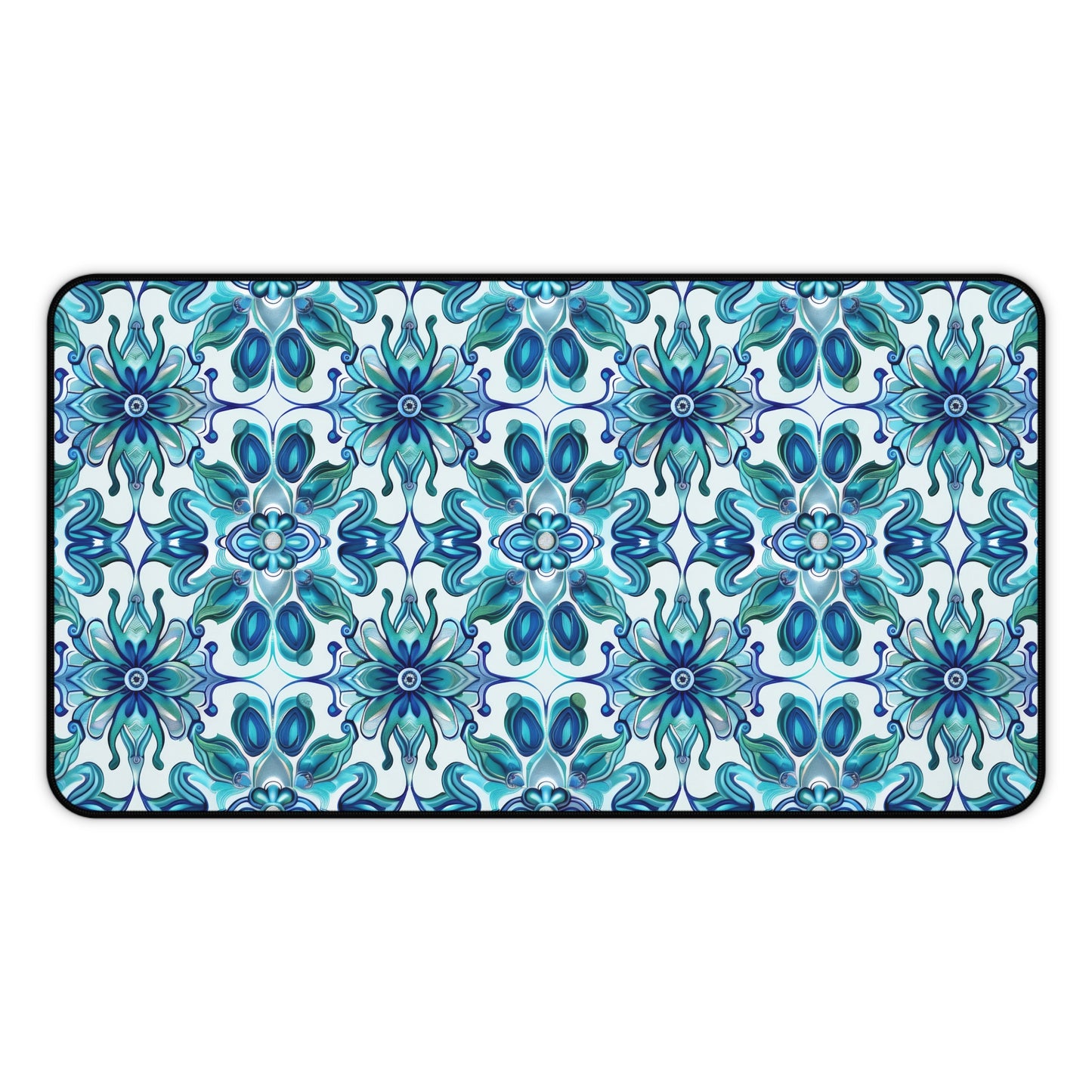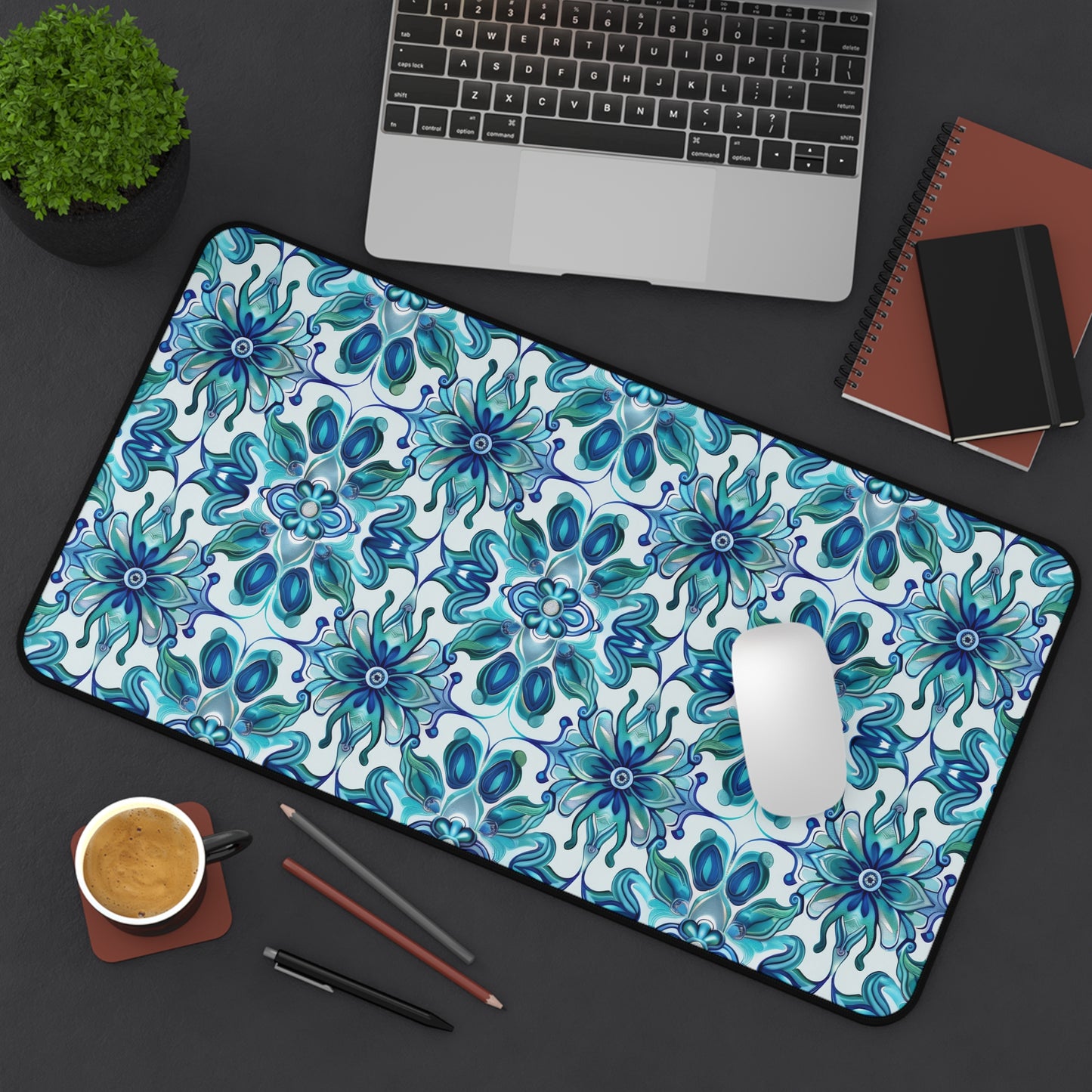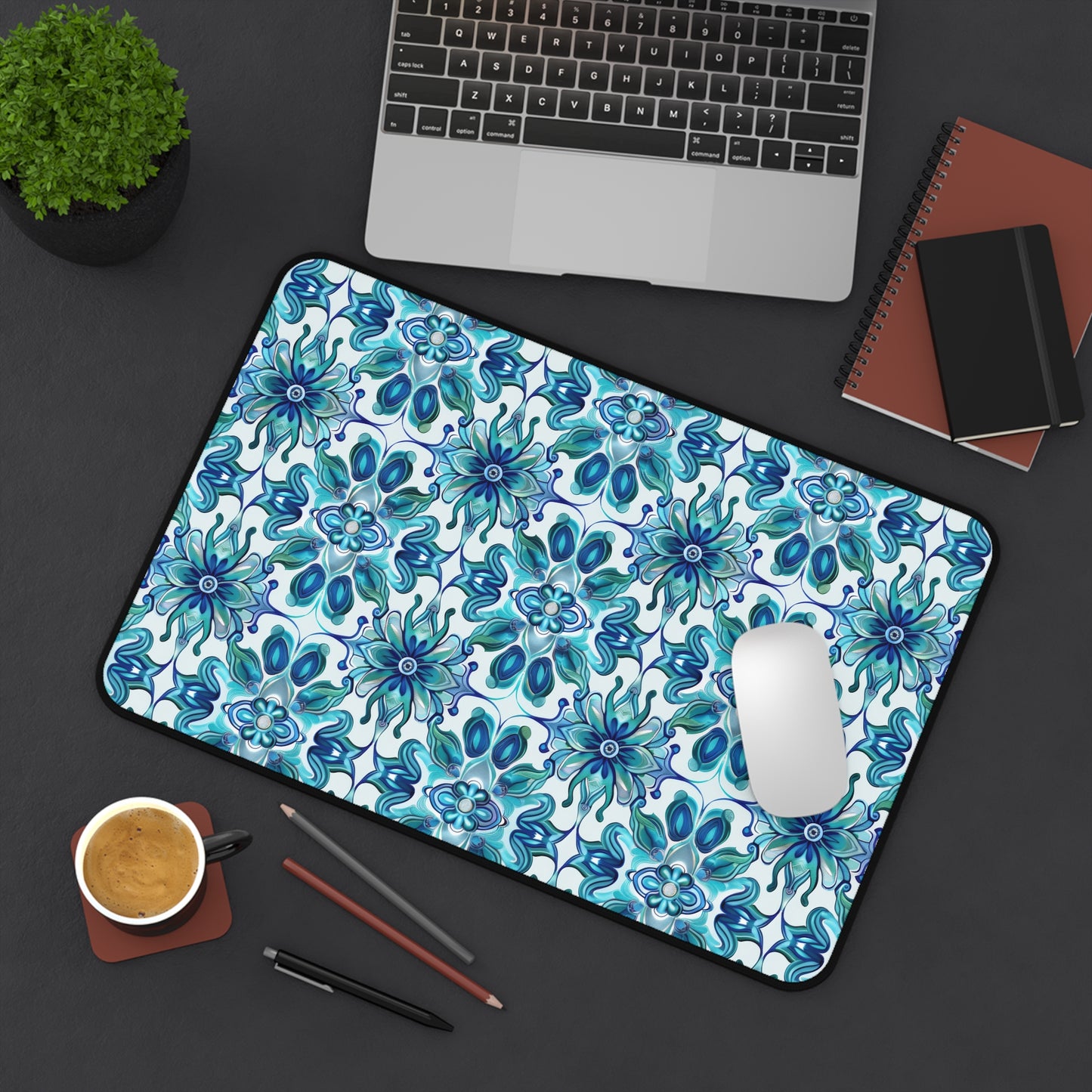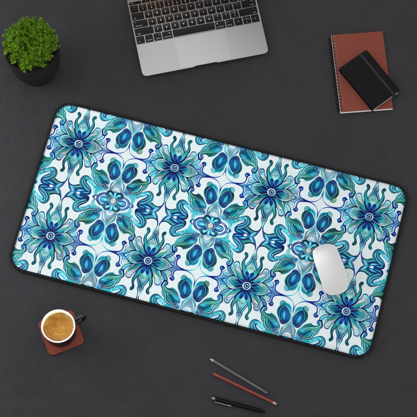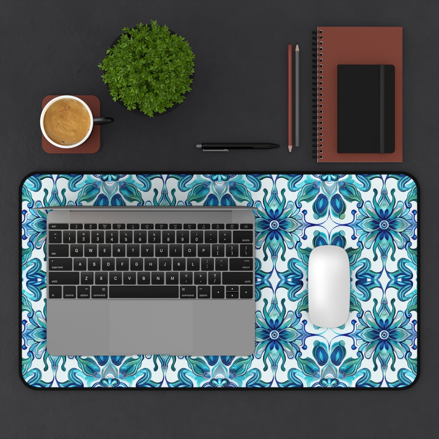 Exquisite Blue Lotus Elegance Floral Mosaic Design Gaming Mouse Pad Desk Mat - 3 Sizes