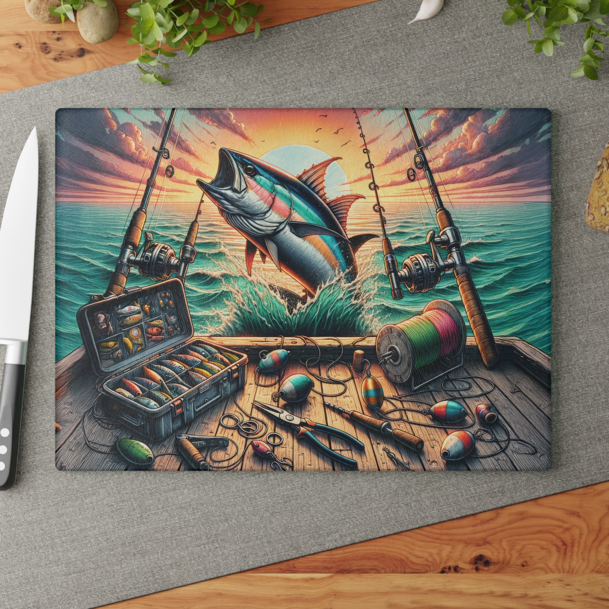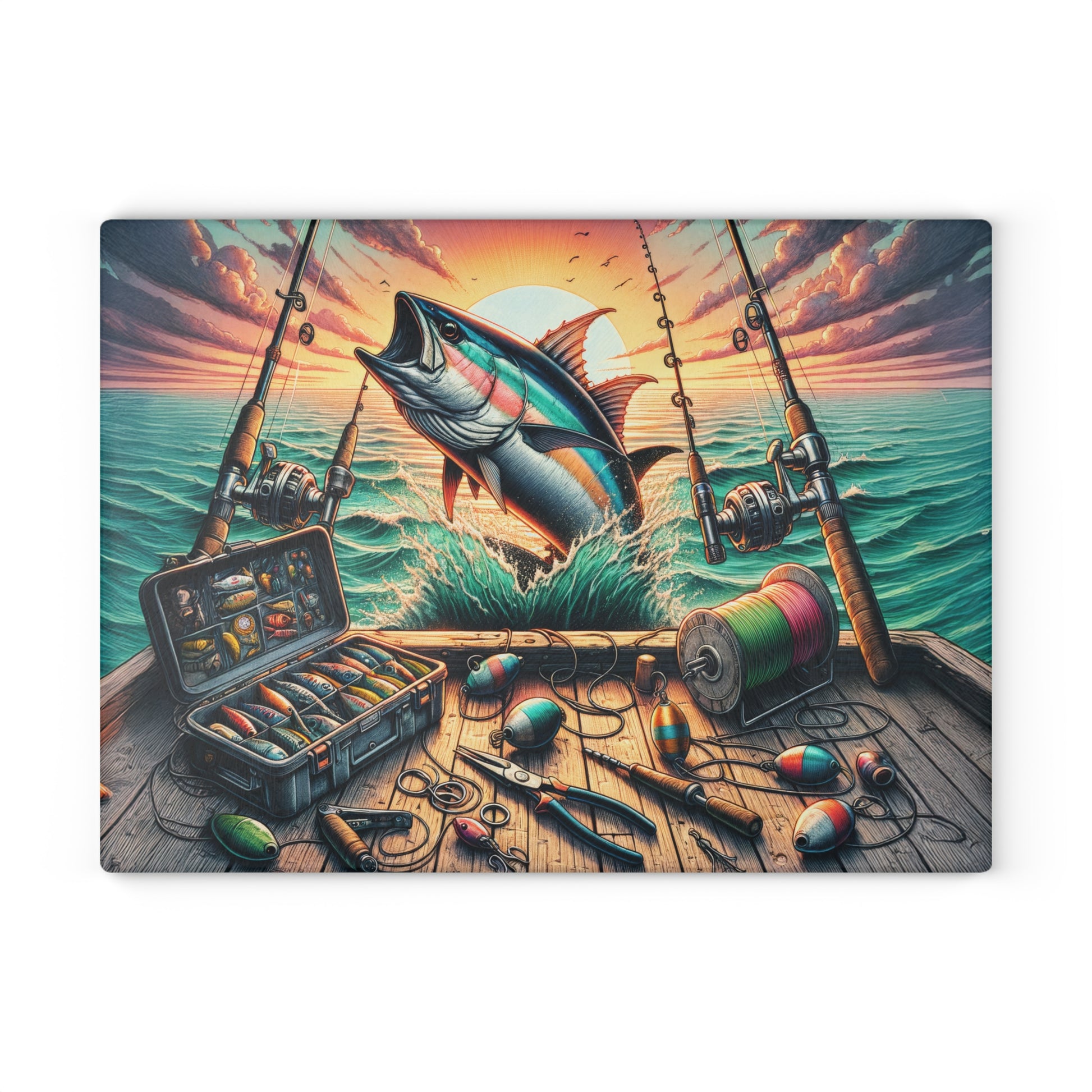 Fishing Life, Sports Fishing Glass Cutting Board, Charcuterie Serving Tray 2 Sizes