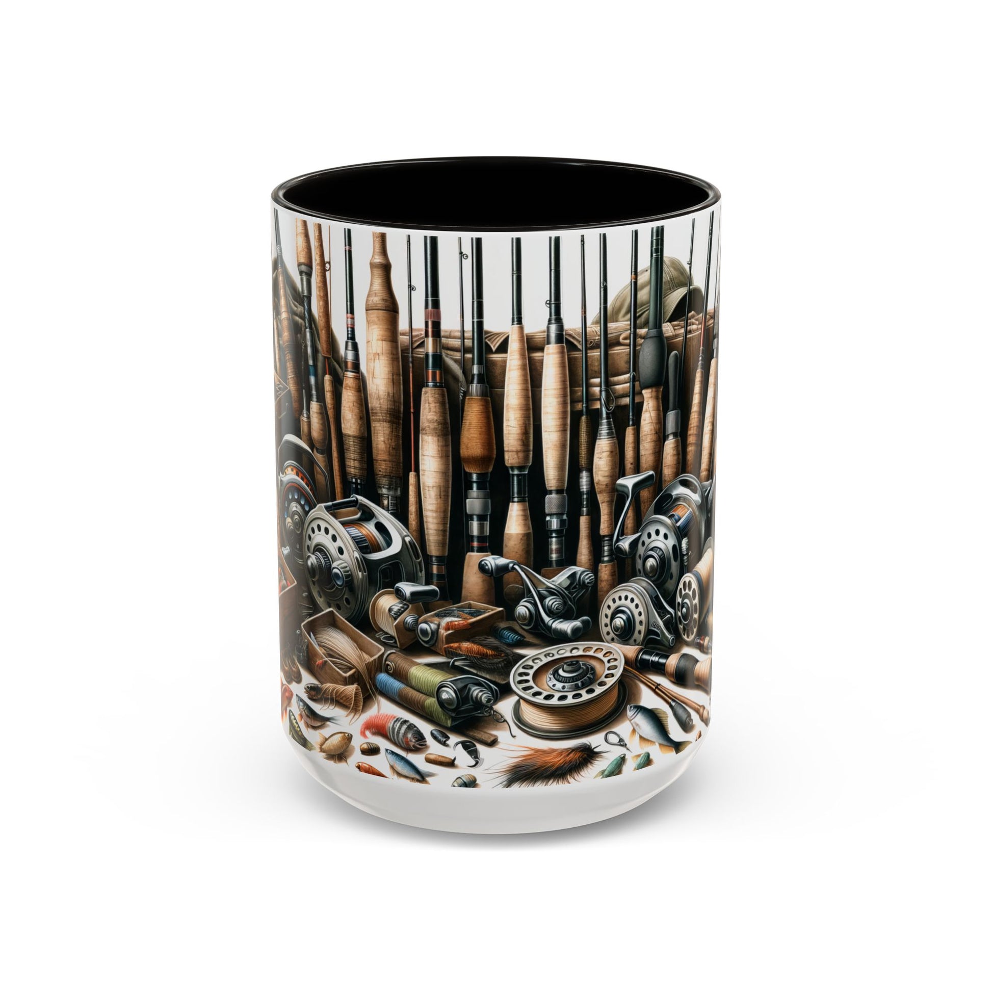 Fishing Rods, Reels, Lures & Tackle Box Colorful Mugs Sizes are 11oz or 15oz