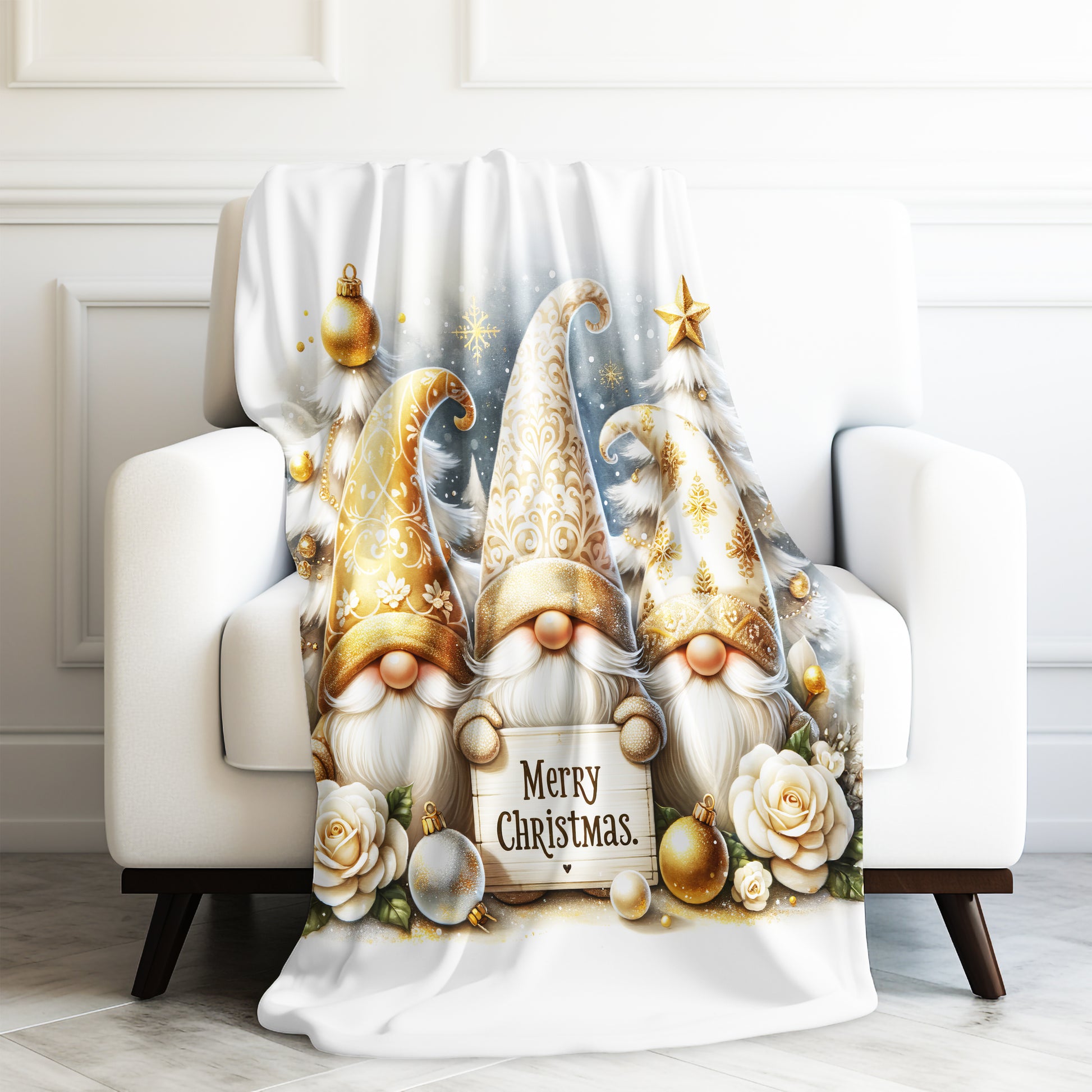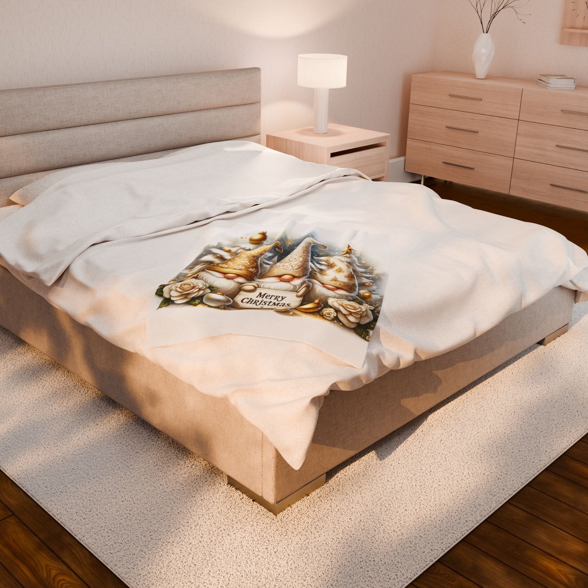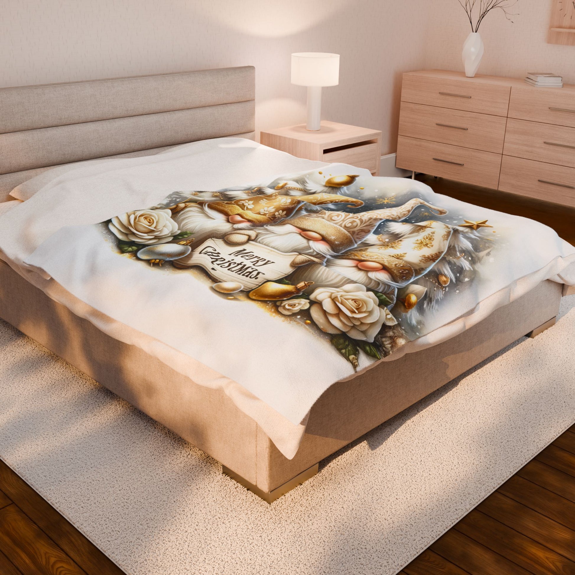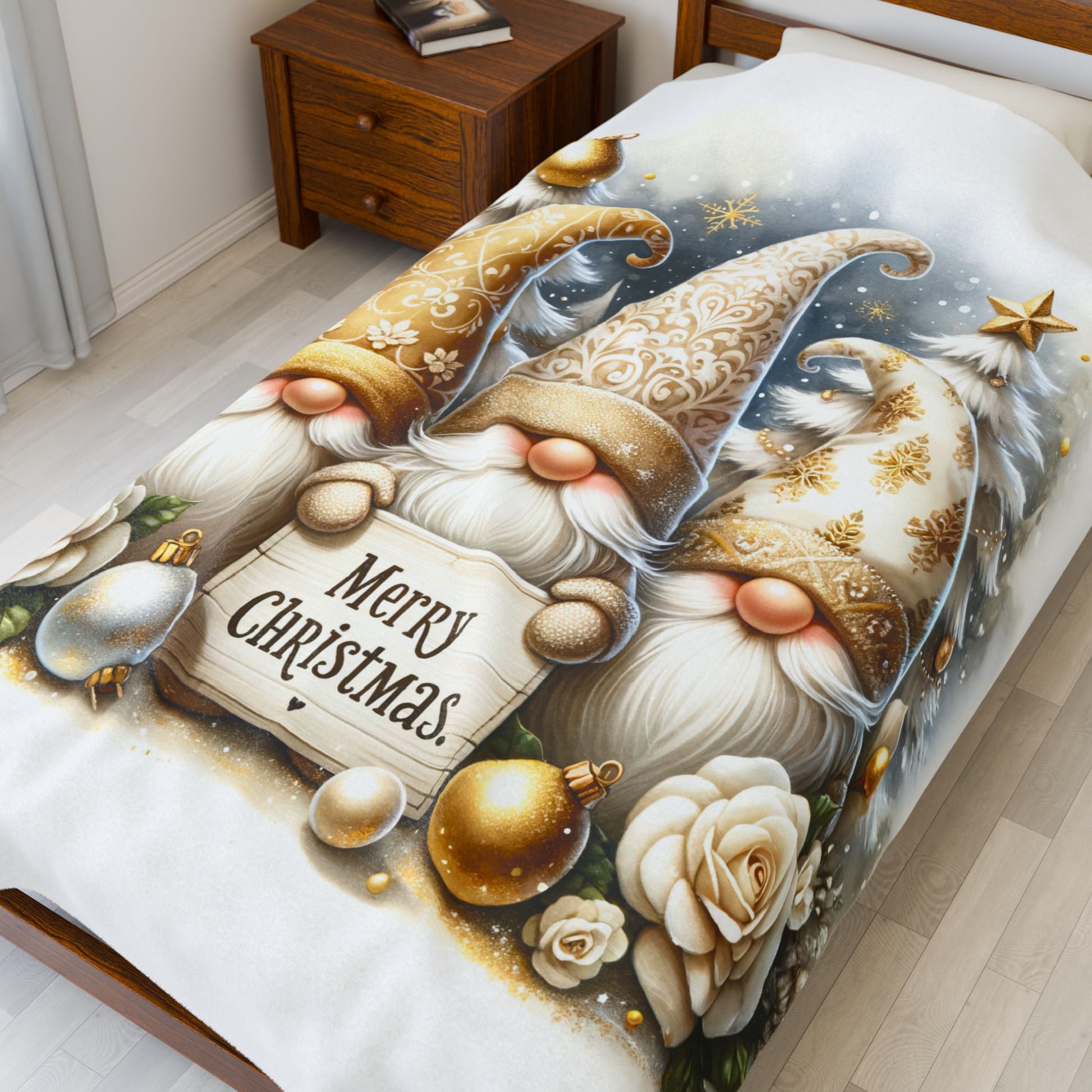 Gnomes Golden Merry Christmas Velveteen Plush Blanket 3 Sizes