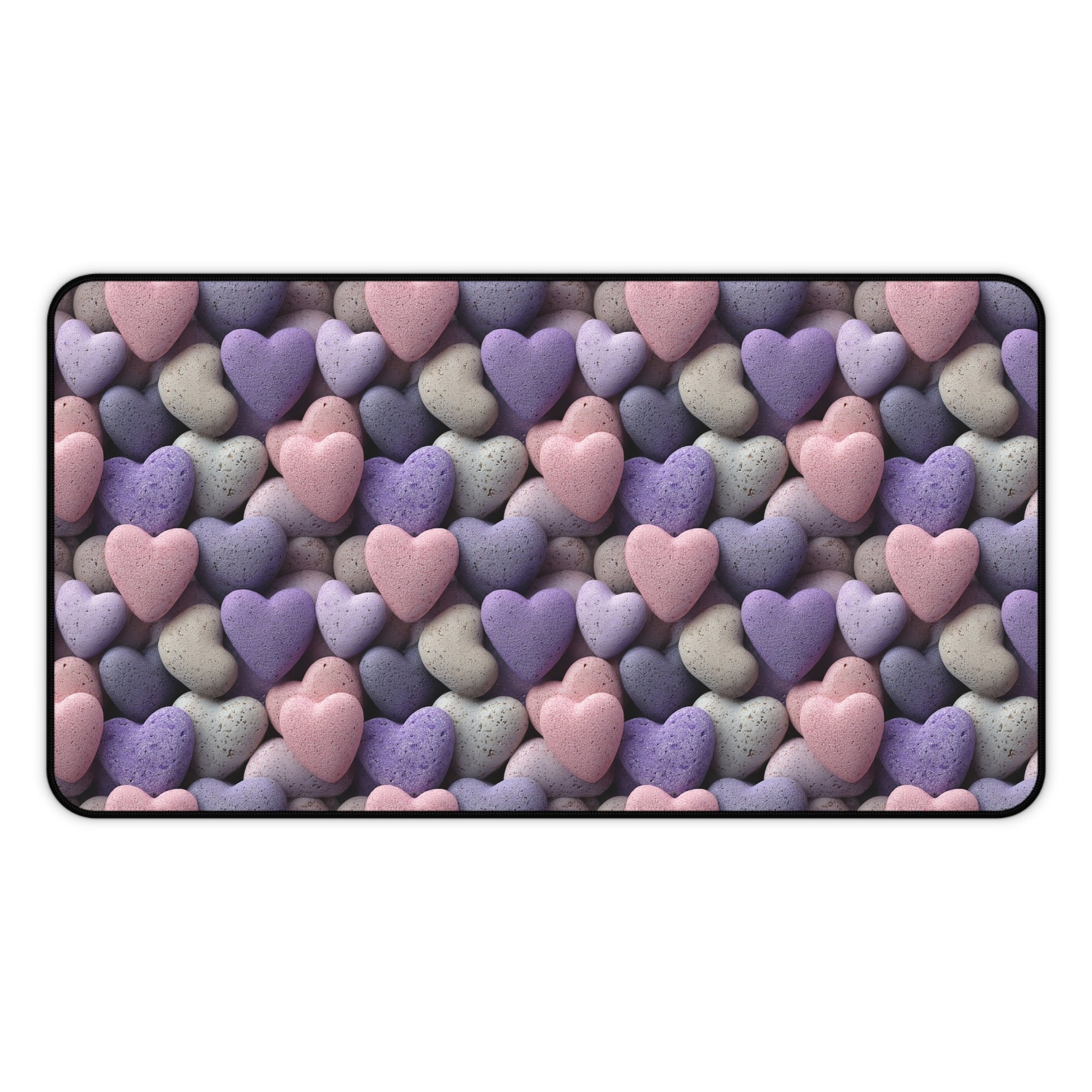Hearts of Stone Deskmat , Rock Heart Desk Decoration, Floral Large Mousepad, Gaming Desk Mat, Desktop Accessory