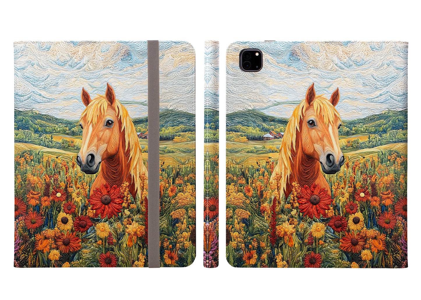 Majestic Horse in Wildflower Golden Meadows Ipad Pro 11 & Pro 12.9 Protective Case and Pencil Holder