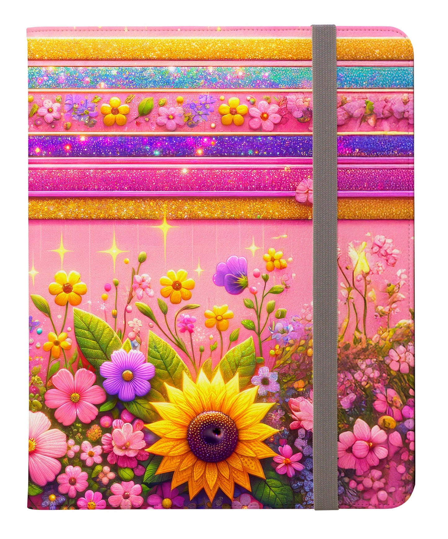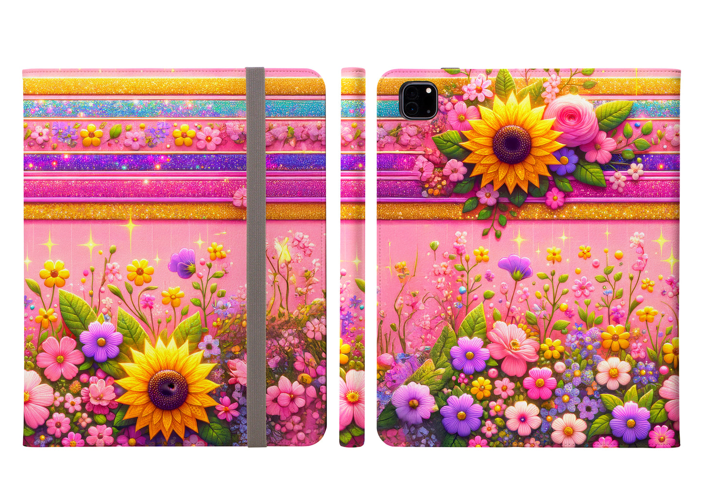 Spring Floral Daisy Pink Purple Glitter Flowers and Sunflowers Lover Ipad Pro 11 & Pro 12.9 Protective Case and Pencil Holder