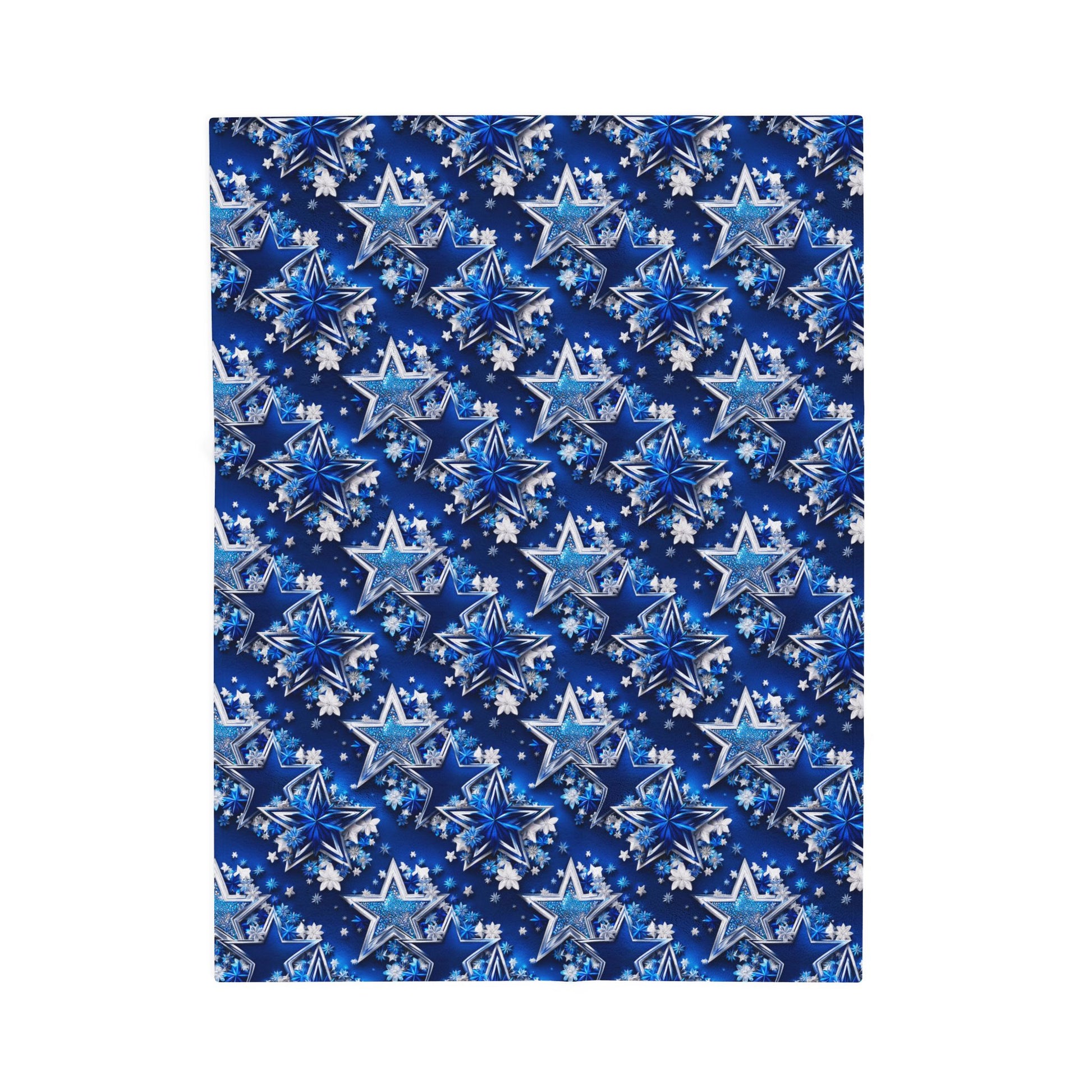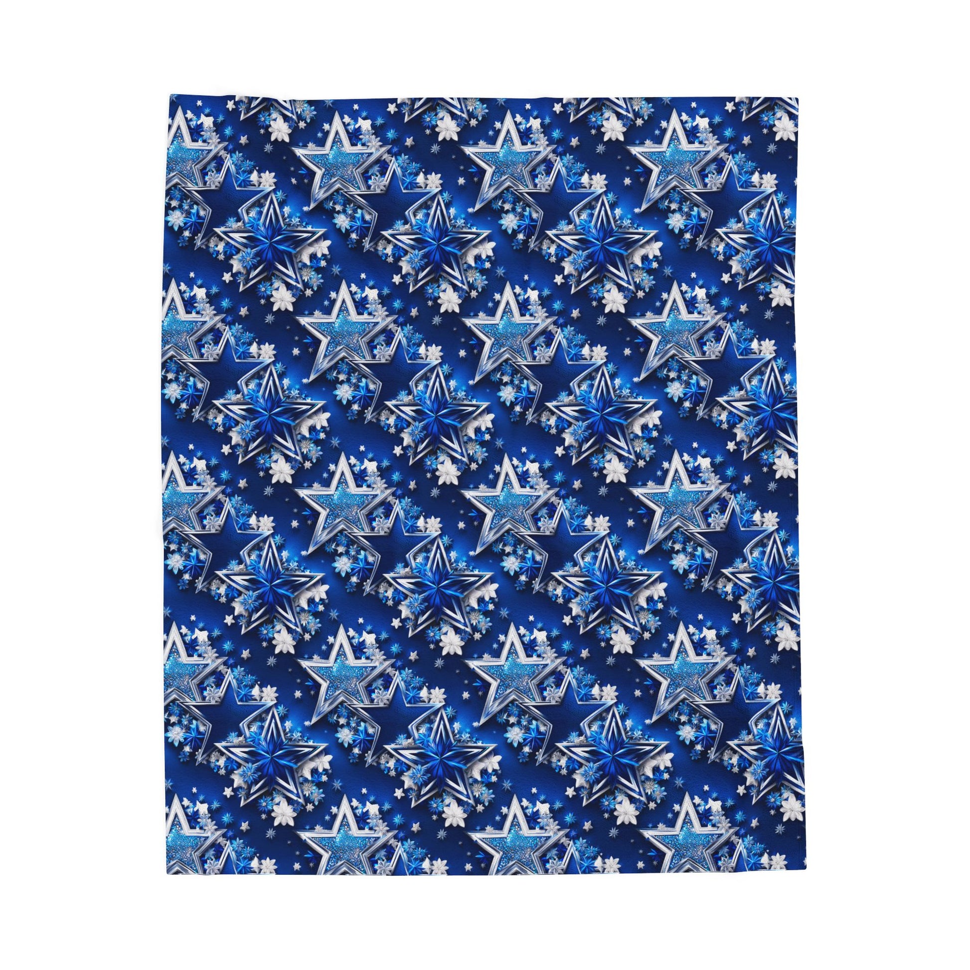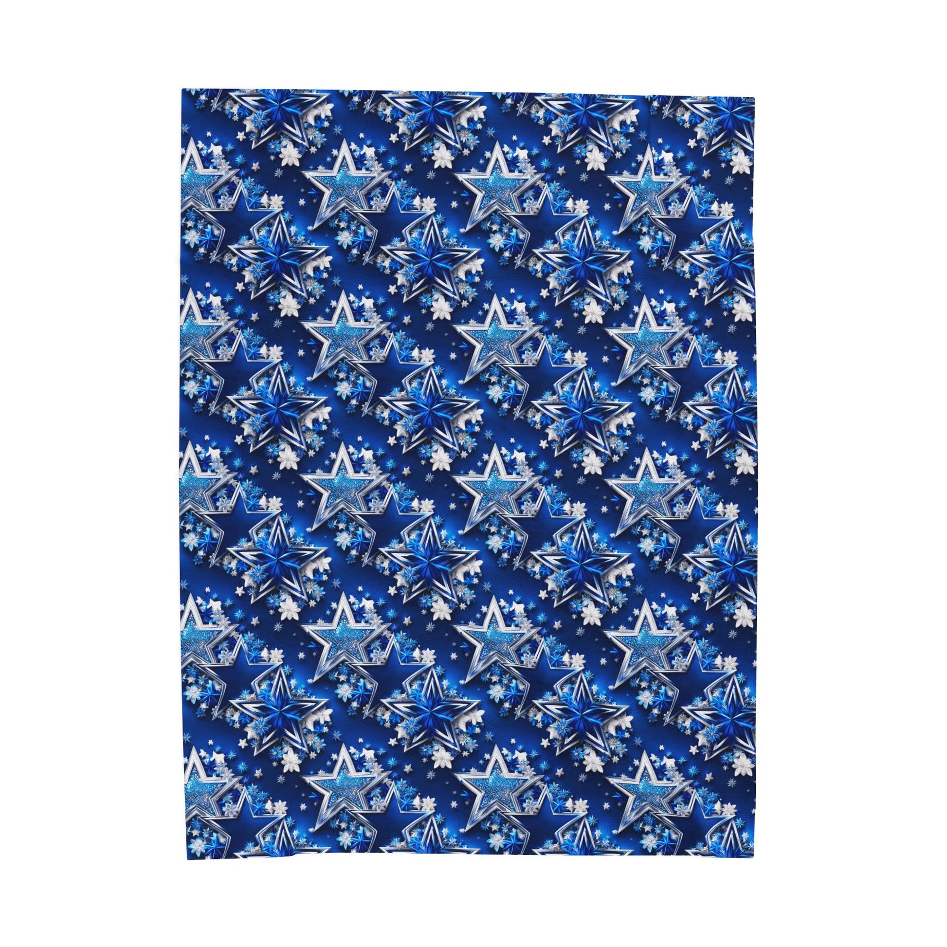 Texas Stars in Blue and Silver with Flowers Print Velveteen Plush Blanket 3 Sizes