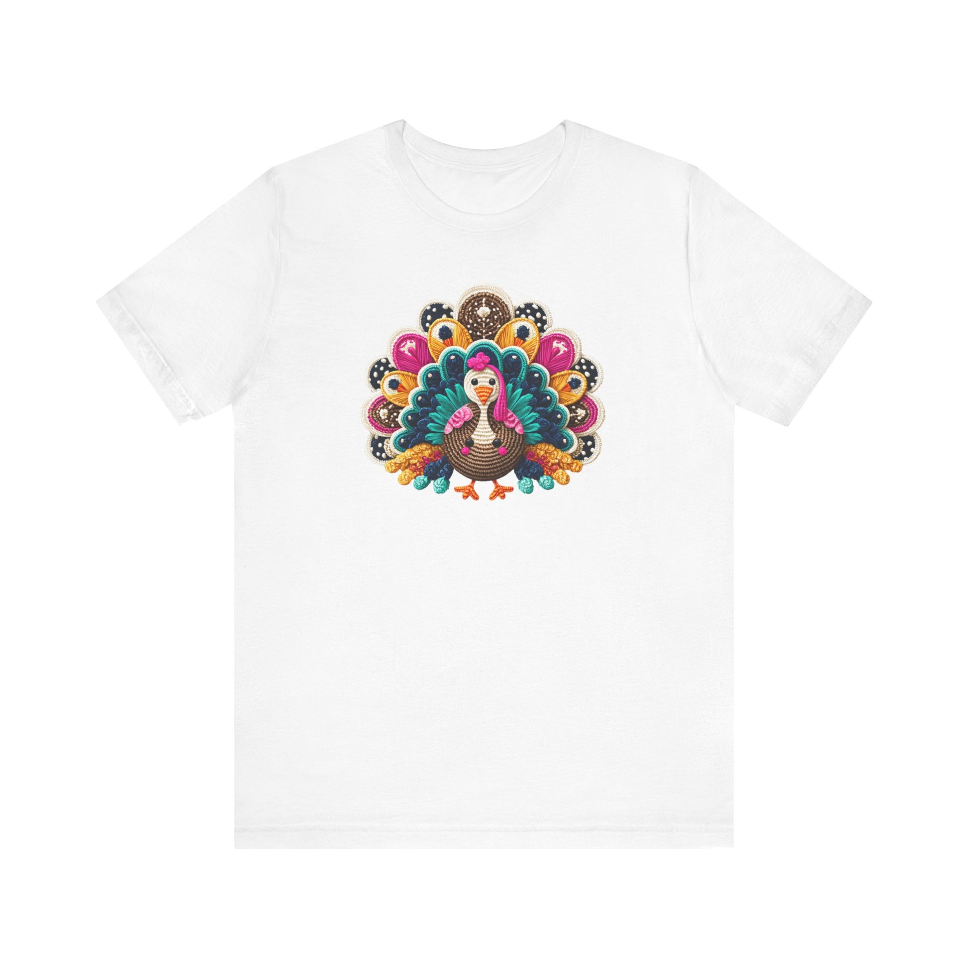 Turkey Fall Thanksgiving Faux Crochet Print Jersey Short Sleeve T-shirt